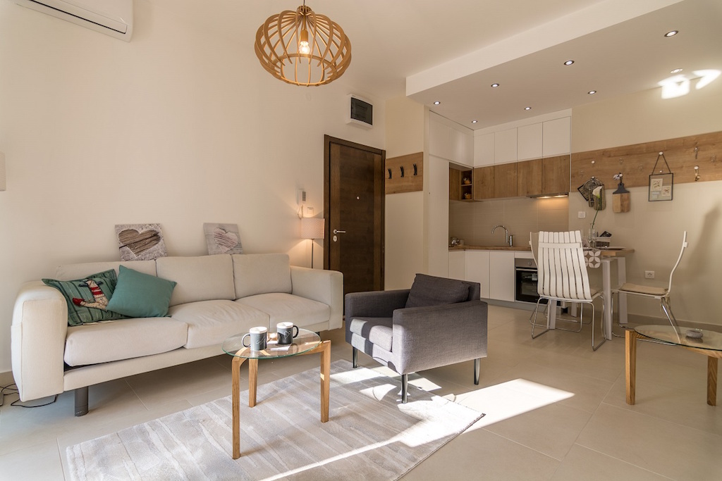 The studio-apartment consists of living room with kitchen, bathroom and terrace.