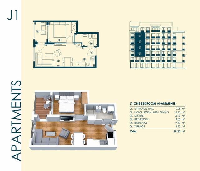 Due to the unique location of the building its residents could find themselves in the center of Budva’s cultural life in a matter of minutes. The building is within walking distance from the promenade, not far from famous classy hotels Splendid, Mediteran, Iberostar, and Dukley Gardens with all its infrastructure. It is the area with numerous restaurants, bars, cozy cafés, retail stores, sport clubs. There are also tennis courts, several SPA centers and an aqua-park.
