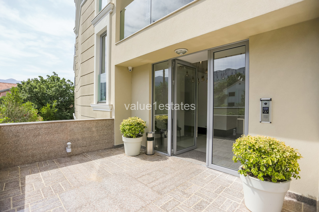Due to the unique location of the building its residents could find themselves in the center of Budva’s cultural life in a matter of minutes. The building is within walking distance from the promenade, not far from famous classy hotels Splendid, Mediteran, Iberostar, and Dukley Gardens with all its infrastructure. It is the area with numerous restaurants, bars, cozy cafés, retail stores, sport clubs. There are also tennis courts, several SPA centers and an aqua-park.