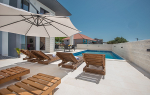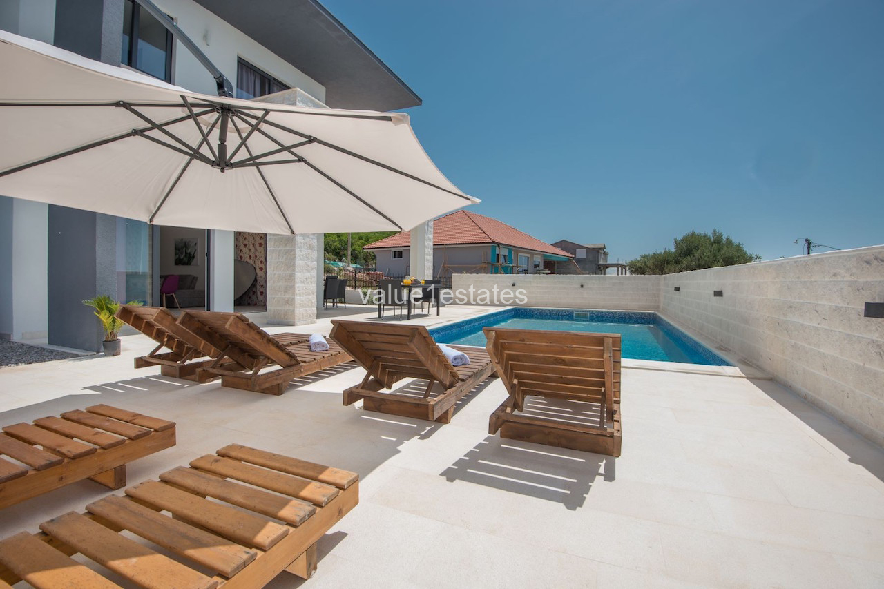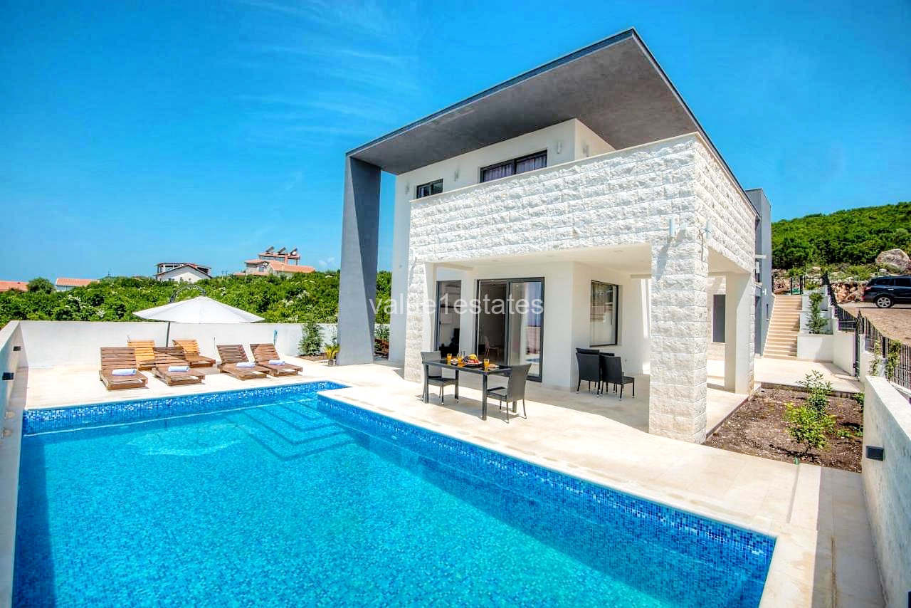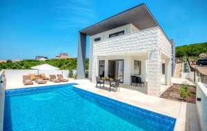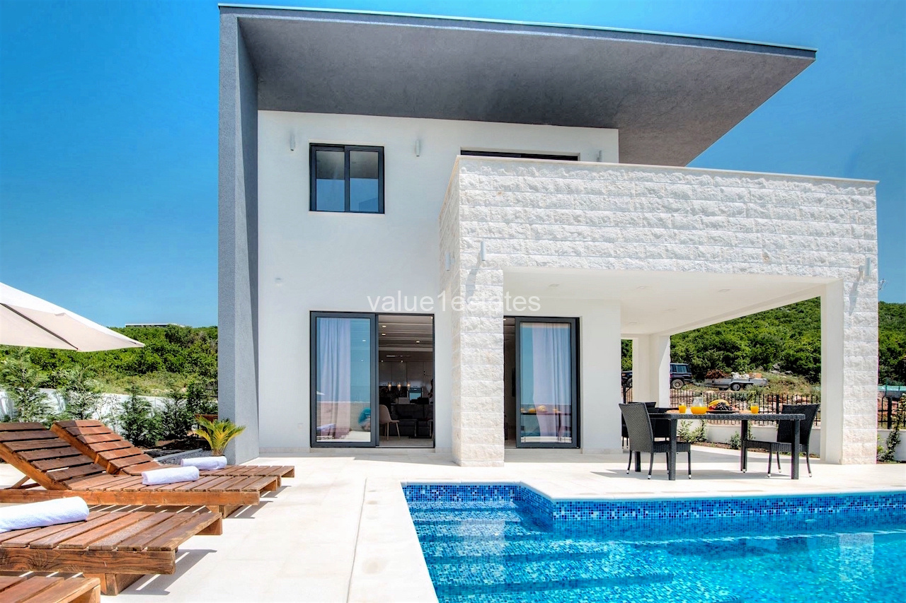 New two-storey villa in Krimovica with the swimming pool and an excellent panoramic view of the open Adriatic Sea.