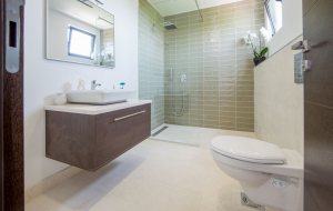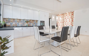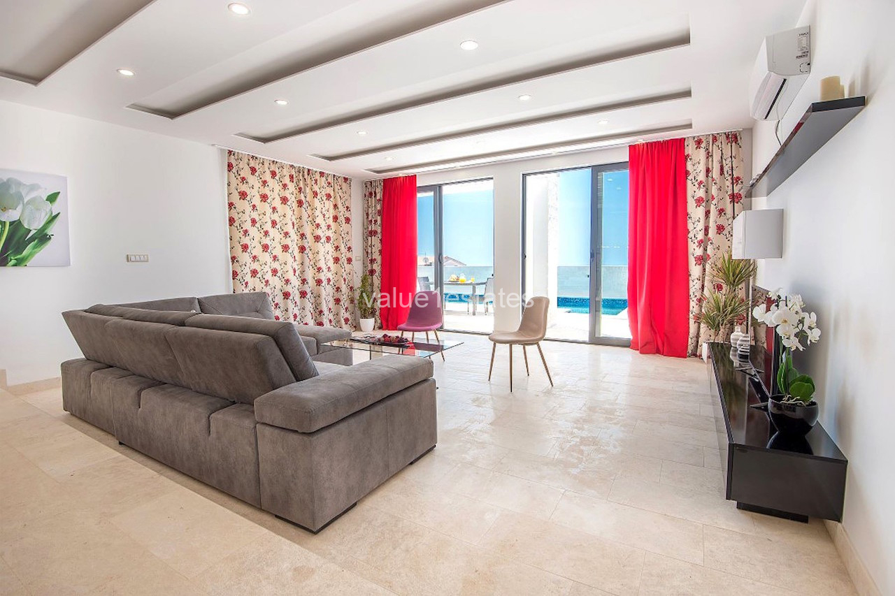 The first floor of the villa has large living room with kitchen and dining area with direct access to swimming pool. There is also a bedrooms and a bathroom on that level.