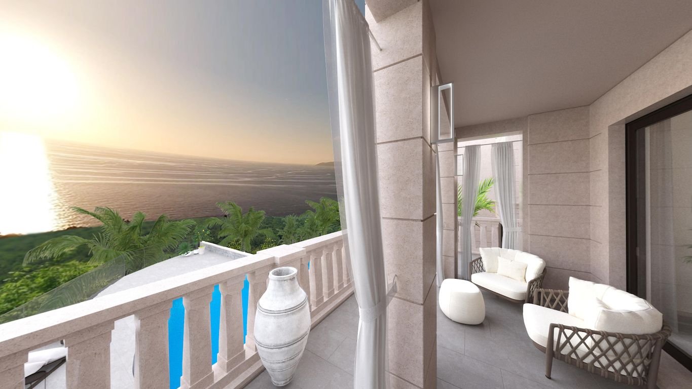 The residential complex and its surrounding territory carry the feeling of peace, comfort and luxury, reinforced by the beauty of the wild nature around it. From the windows and terraces one can enjoy astonishing panoramic views of the Adriatic Sea. High ceilings, stained-glass windows, and well thought architecture make this development very attractive piece of property on the coast. Being not far away from the main touristic center of Montenegro, the complex enjoys the benefit of closeness to city infrastructure and all amenities. It’s a perfect investment for those who like to rest in the beautiful peaceful place with terrific sunsets, surrounded by olive trees and cypresses, to breath of curative air and to swim on the best beaches of Drobni Pijesak and Perazica Do, being at the same time not far away from the city life.