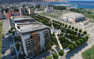 The complex is located near Topolica sport arena, surrounded by several parks. It has a large own territory, where it is planned to build a park with the central fountain, lots of Mediterranean greenery, benches, walking space for pets, bicycle lanes and children playground.