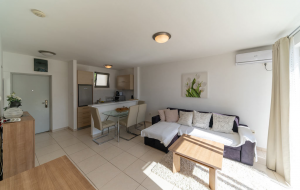 The residential complex has private territory with two communal swimming pools. All tenants have access to both of them together with the free use of sun loungers and parasols. There is a free WiFi on all complex territory, 24/7 on site security, laundry and apartment cleaning service are available as well.