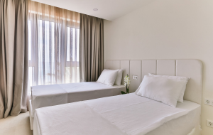 All apartments are sold by the turn key and are fully equipped and ready for use. The apartments are equipped with furniture and equipment according to the standards of the hotel industry for a 5-star hotel. Modernly designed apartments contain spacious living rooms with luxurious kitchens, comfortable and quiet sleeping areas, practical bathrooms and balconies with translucent sliding portals. Future owners of Beach Properties apartments will have access to all services including: concierge, 24h front desk, room-service, valet parking and security. Furthermore, there are organized transfers from and to airports, excursions, rent a car, rent a yacht, rent a helicopter, and organization of different types of celebrations within and outside of the complex.