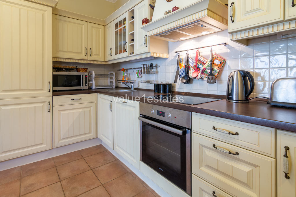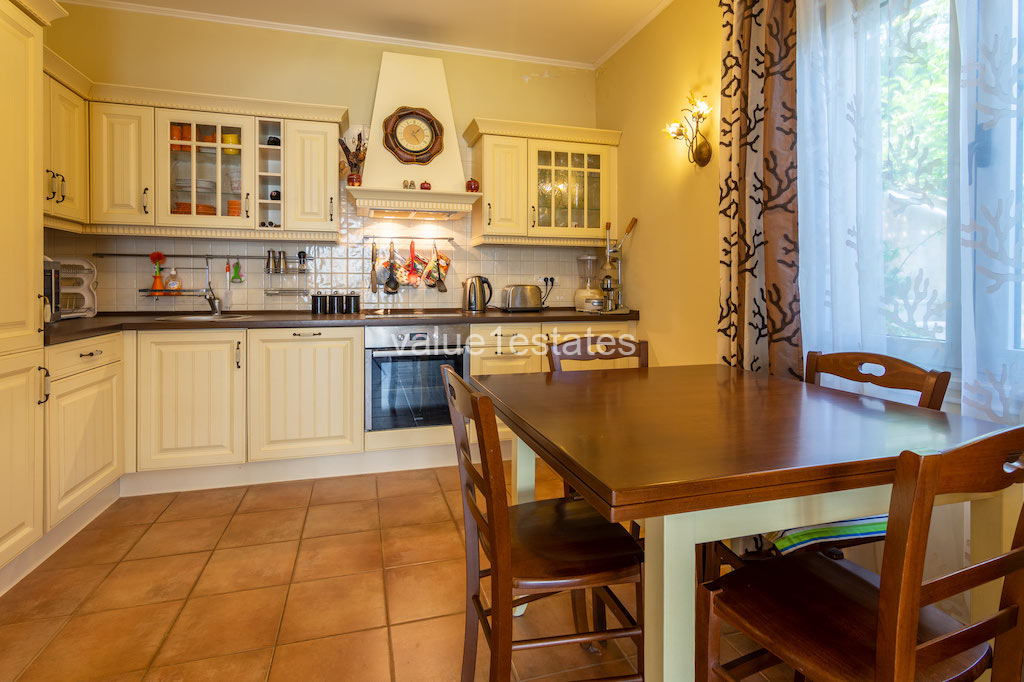 The territory includes huge water pool (15 m), covered gallery, sauna, jacuzzi, green terrace, barbecue zone, covered parking spot, architectural illuminating.