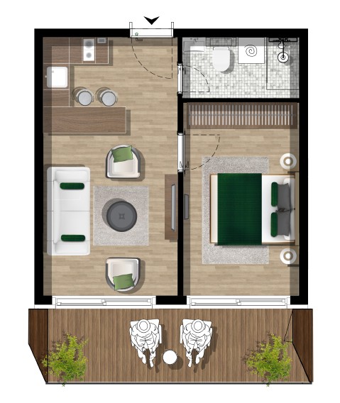 You can also get a feasibility study, so you can see income calculations if you decide to rent your apartment. Furniture packages are included in the price.