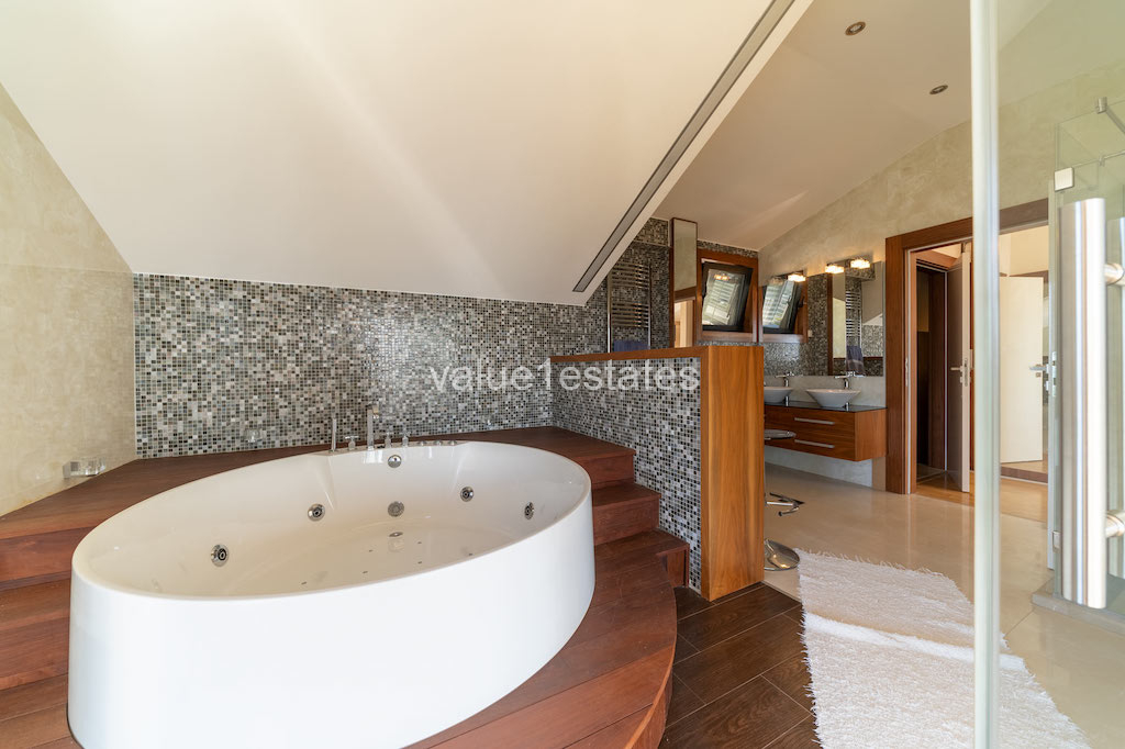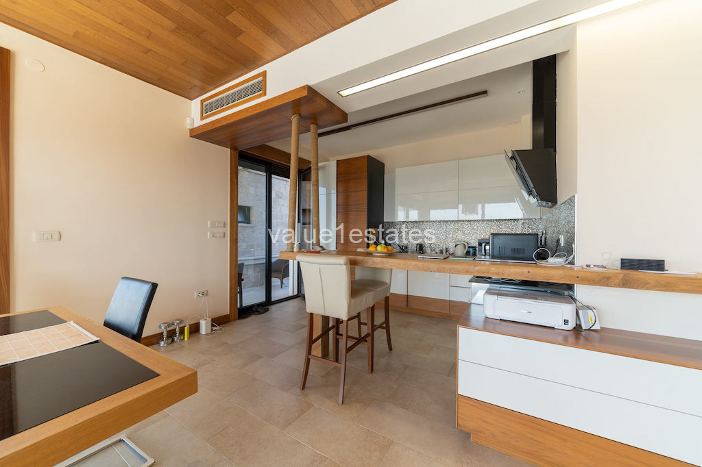 On the 2nd floor of the villa there are 2 bedrooms, a large dressing room and a large living room, which can also be transformed into a bedroom. On the 2nd floor there is also a large bathroom. From all bedrooms there is access to a huge terrace that runs along the entire facade of the house.