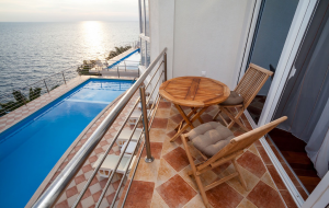 The magnificent view with the wonderfully clear water of the Adriatic Sea and coastal cliffs opens from panoramic windows.
