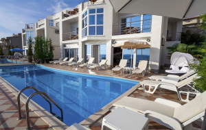 The territory of the villa is completely fenced, there is a parking with automatic gates. Special attention deserves a swimming pool with areas for adults and children. It is quite roomy - 12 by 4,5 meters, with a depth reaching 2,2 meters. For children, a part of the pool is specially fenced off where the depth does not exceed 80 centimeters. A private staircase descends from the pool to the sea.