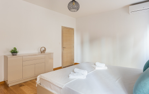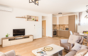 Fully furnished apartment in a new building in the most beautiful part of the Budva Riviera. Olive groves, a magnificent botanical garden, pebble beaches - all this makes this resort the most attractive for those who cherish privacy and peace. At the same time, the city of Budva is only 6 km away. Near the city is the magnificent Milocer Park, leading to the island of St. Stefan and the famous King’s and Queen’s beaches.