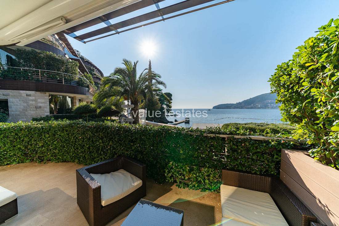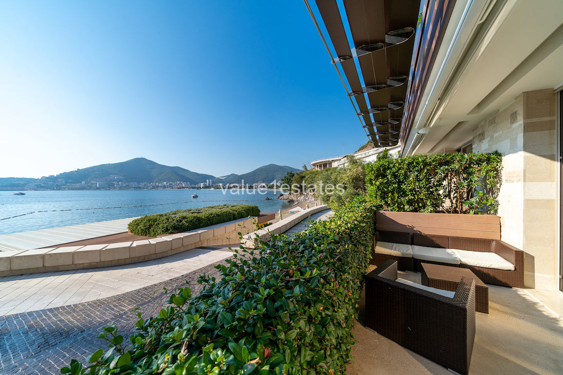 Apartment with stunning view over the sea located in luxury waterfront residental complex Dukley Gardens. This complex has great location on Zavala peninsula in one of the most upscale and popular touristic places of Montenegro – Budva Riviera, surrounded by the green Mediterranean gardens, on the downward slope to the sandy Adriatic shore.