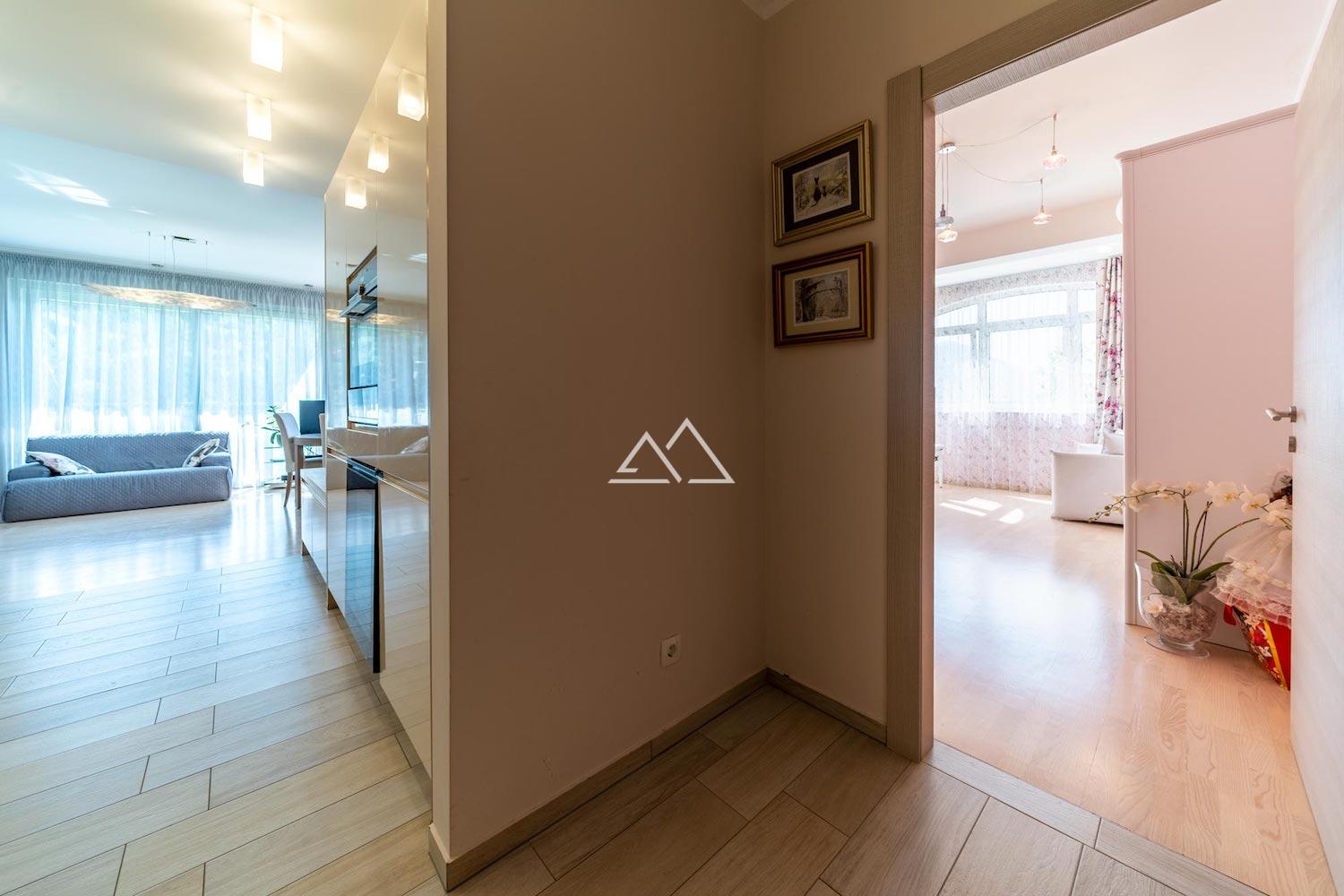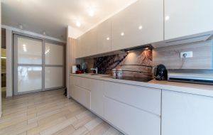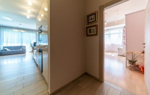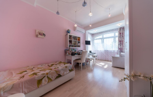 The apartment consists of a spacious living-room with separate kitchen zone, 3 bedrooms, one of which is of a smaller size and could be also used as a dressing room, or study, and a large bathroom.