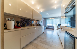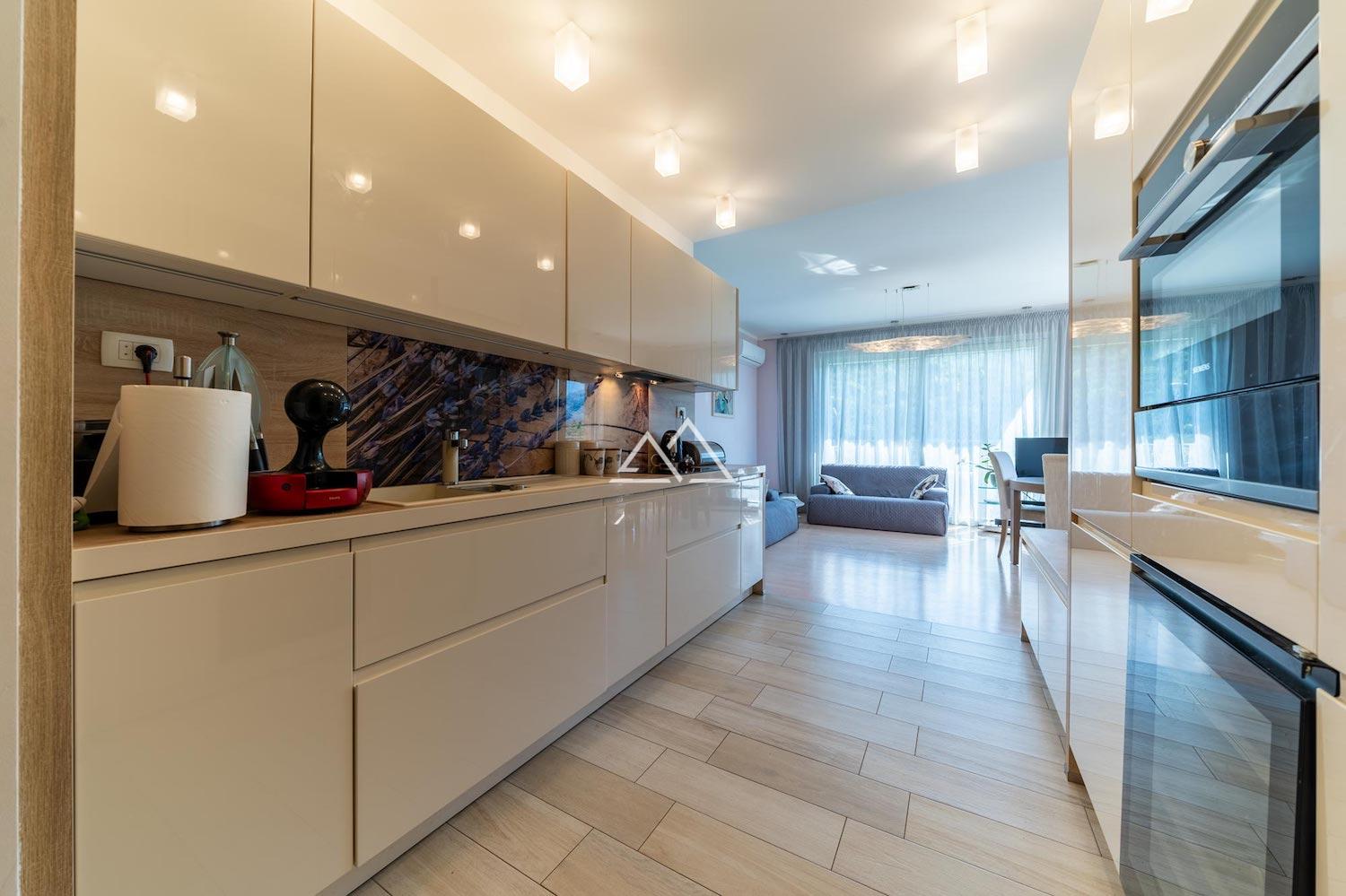 The apartment is fully furnished with Italian and German furniture, and all the necessary household appliances, completely ready for living.