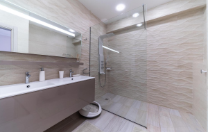 The courtyard is landscaped with green grass, and has a barbecue area. The living room and 2 bedrooms’terraces open onto the patio - one natural stone terrace and one covered terrace.