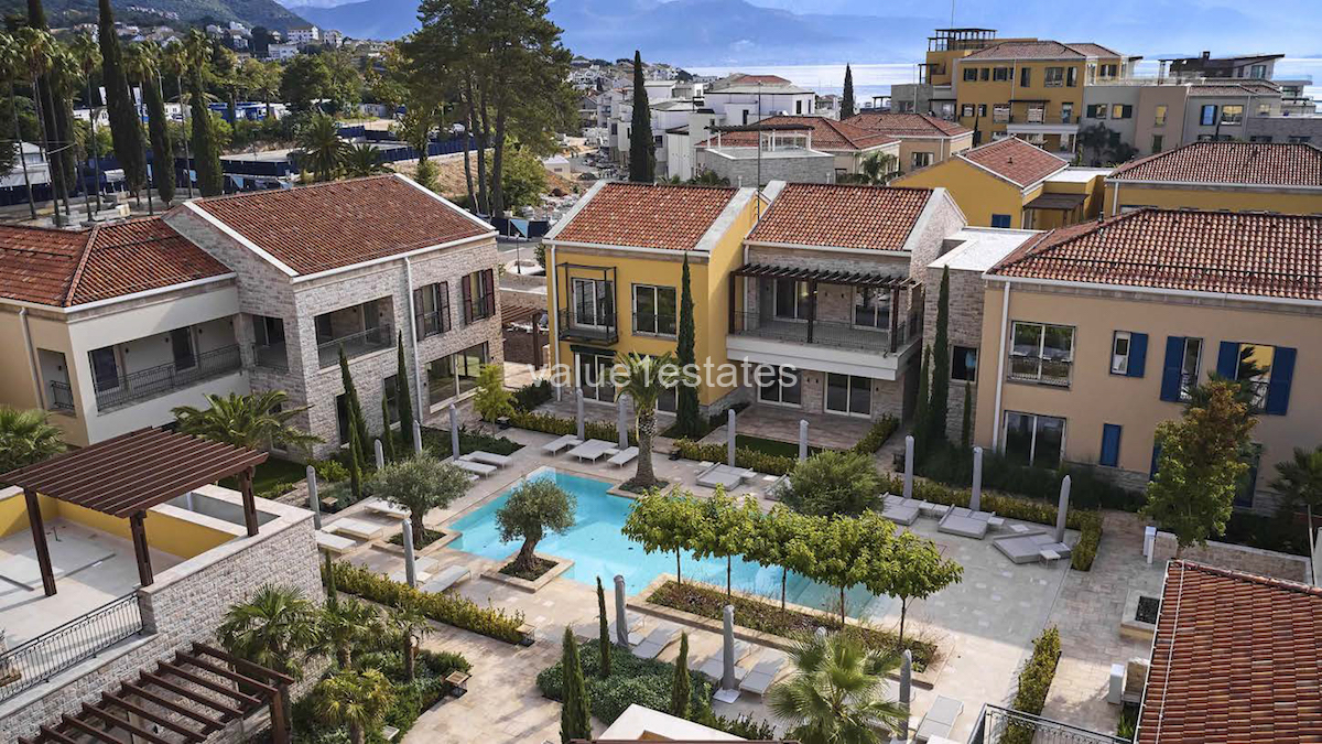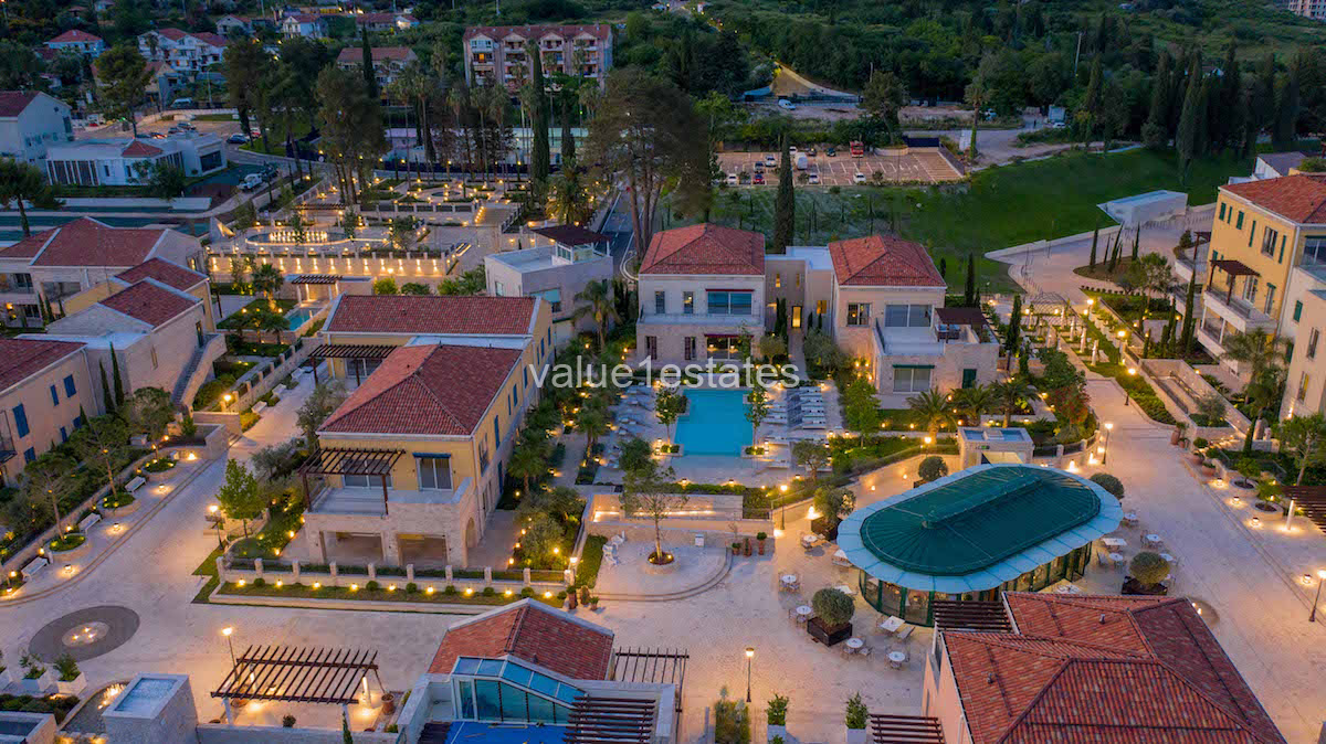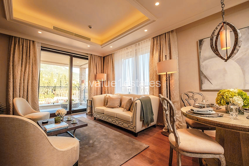 The feel of the Village Residences is traditional Mediterranean, with a combination of textured Montenegrin vernacular and Venetian styling. Residents can choose from a characterful range of low-rise apartments, penthouses and villas in individual zones interwoven with landscaped pathways, all with light and elegant interior spaces and fitted out for modern comfort and functionality with valet parking.