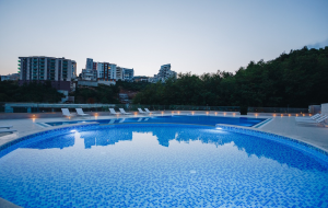 • Big beautiful swimming pool made of black stone