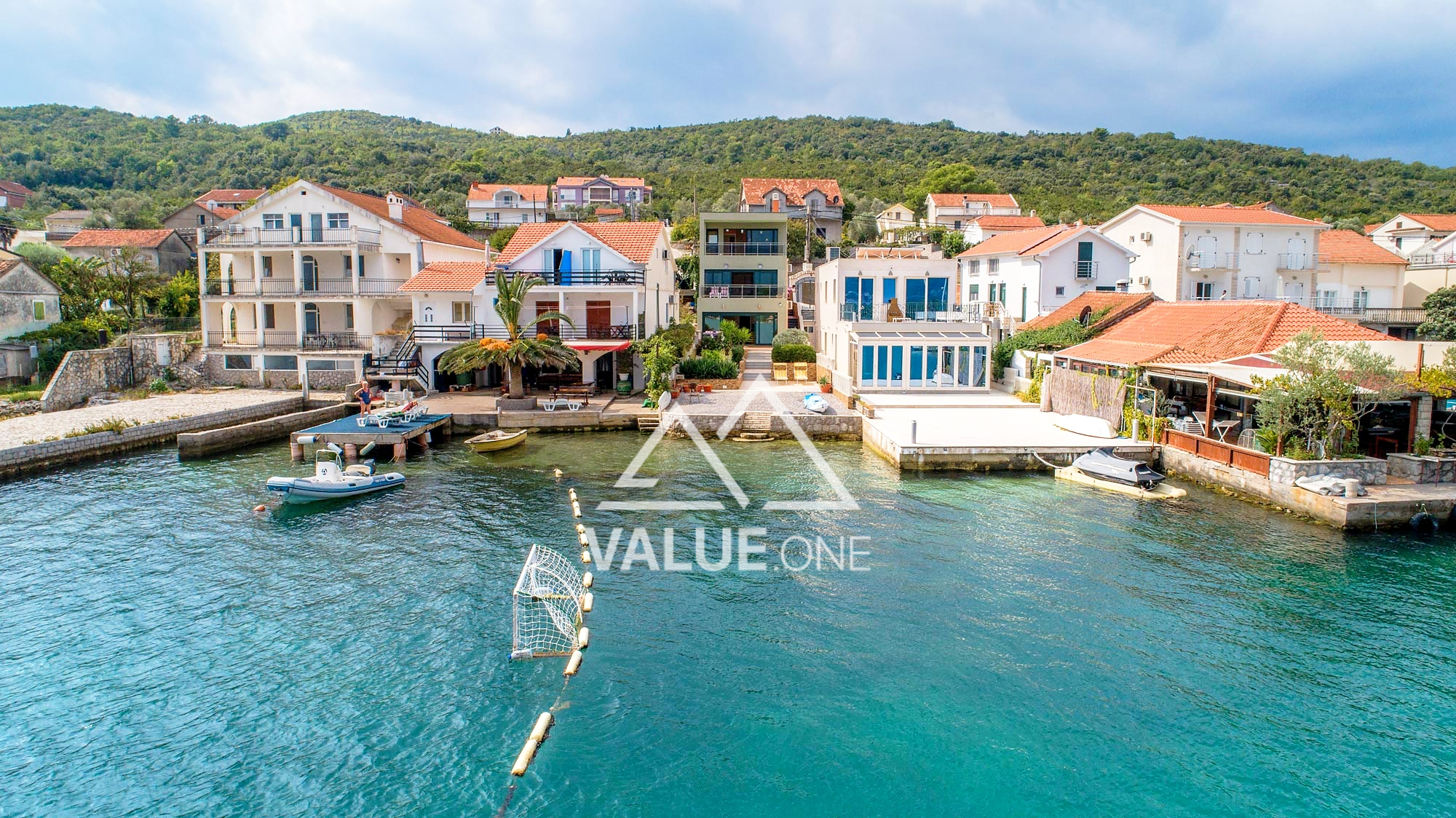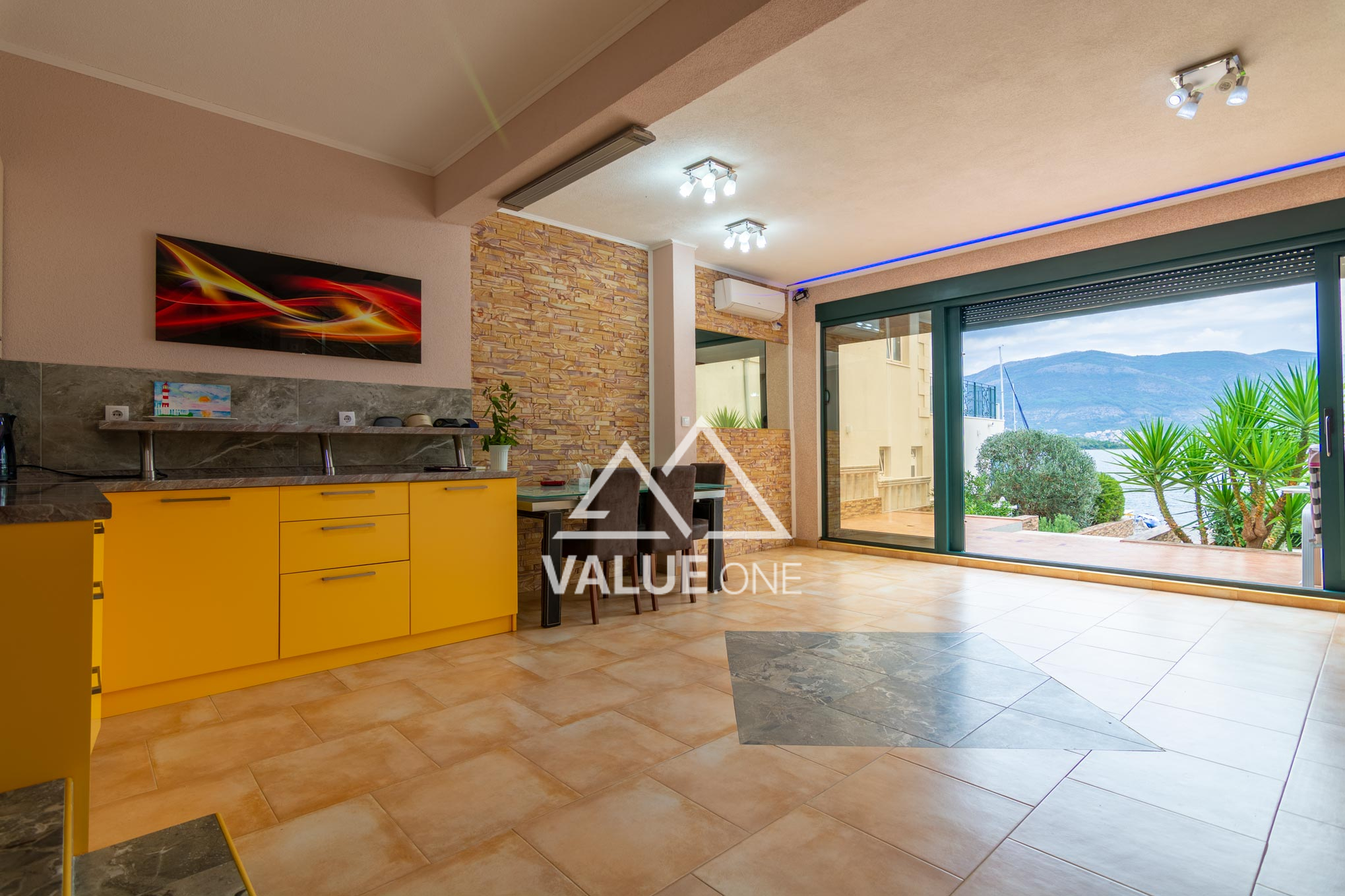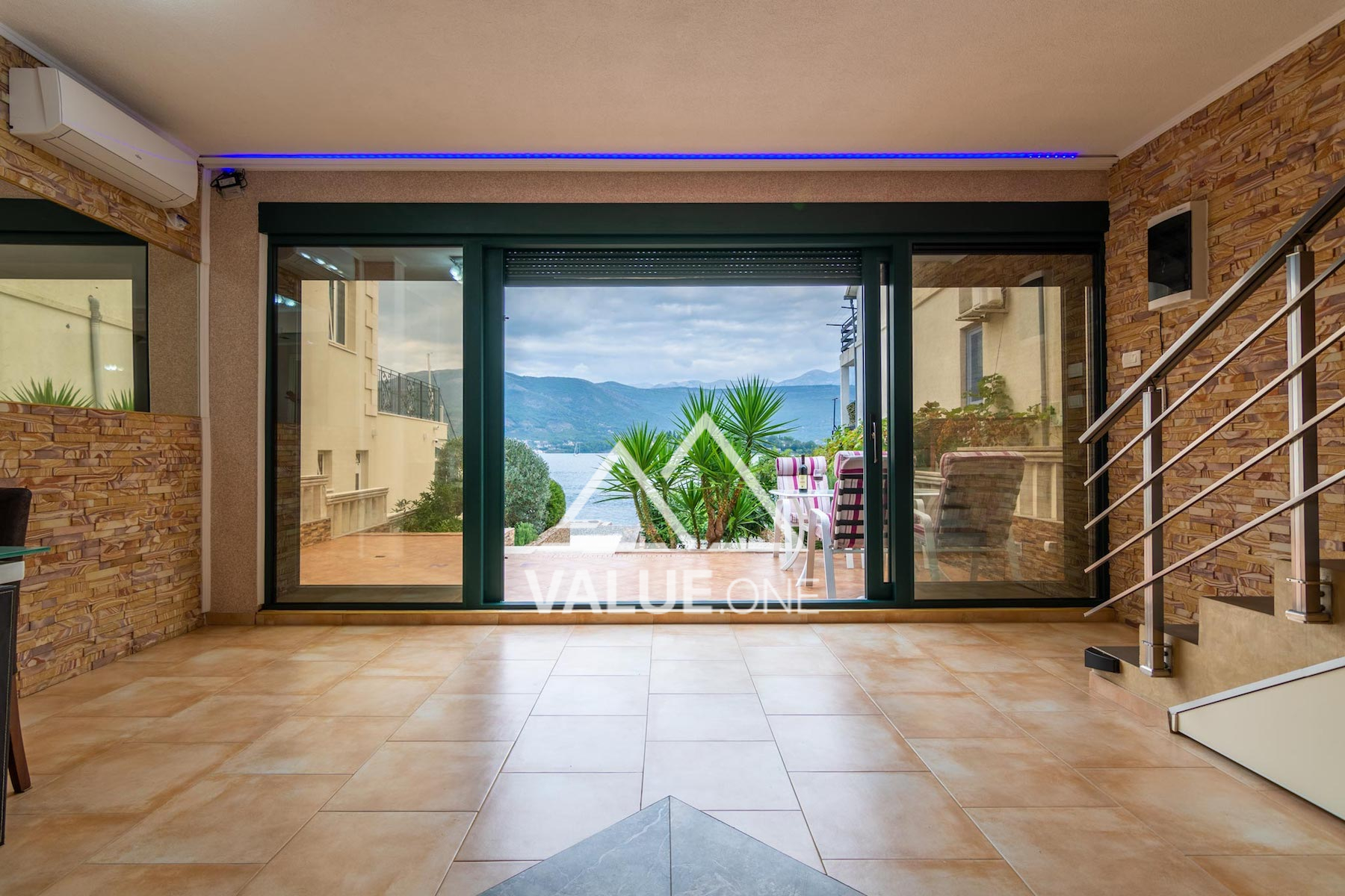 A very rare offer - a house right on the seafront with a private beach and pier. The property is in Tivat area in the town of Krtole. It is a quiet and picturesque place. The windows offer stunning panoramic views of the sea and islands. In the yard there is a garden with palm trees, figs and other plants, and a grill area.
