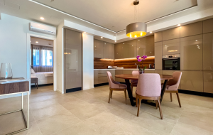 All apartments are sold by the turn key and are fully equipped and ready for use. The apartments are equipped with furniture and equipment according to the standards of the hotel industry for a 5-star hotel. Modernly designed apartments contain spacious living rooms with luxurious kitchens, comfortable and quiet sleeping areas, practical bathrooms and balconies with translucent sliding portals. Future owners of Beach Properties apartments will have access to all services including: concierge, 24h front desk, room-service, valet parking and security. Furthermore, there are organized transfers from and to airports, excursions, rent a car, rent a yacht, rent a helicopter, and organization of different types of celebrations within and outside of the complex.