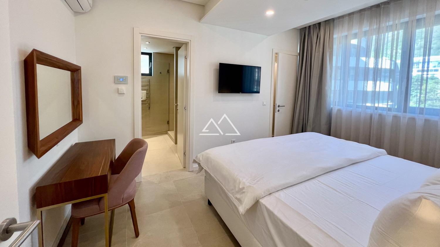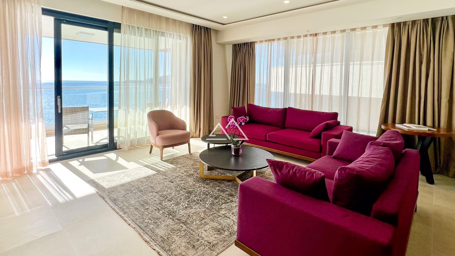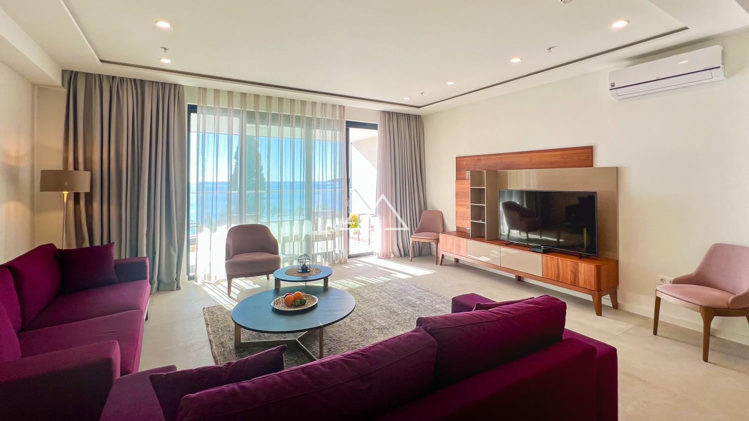 2-bedroom apartment in a new modern complex on the 1st line in Rafailovici, in the Budva Riviera, in the most developed and attractive tourist destination of Montenegro.