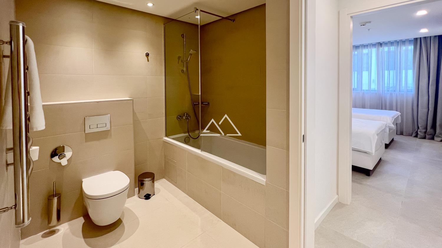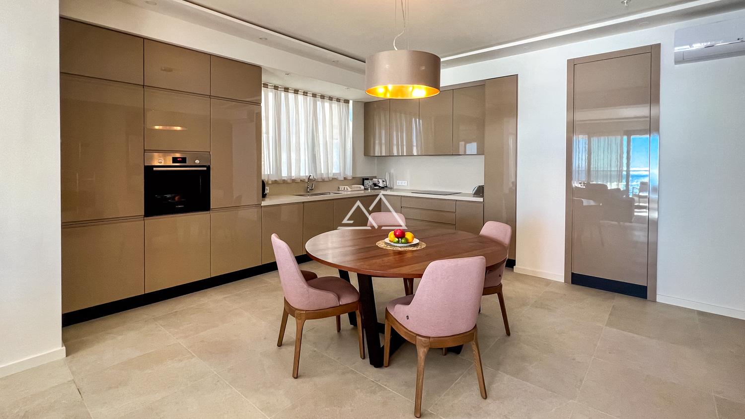 The apartment consists of a living room with access to a terrace with stunning sea views, a kitchen and dining area, two bedrooms and two bathrooms.