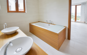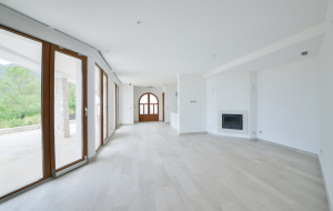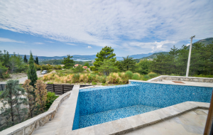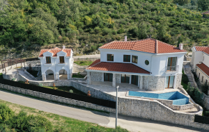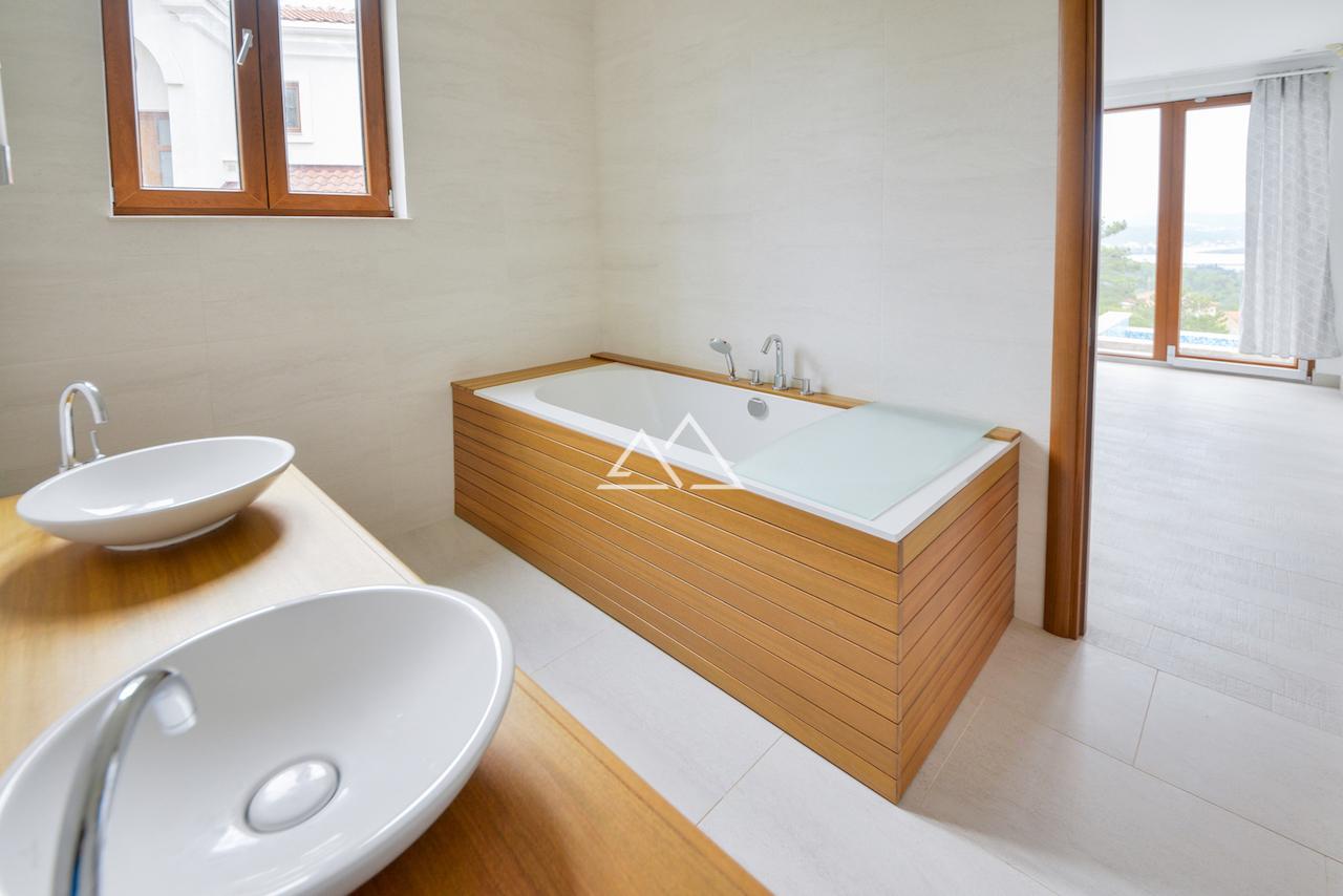 The villa features 4 bedrooms in the main house and an additional bedroom in staff quarters. With an addition of a private outdoor infinity pool this villa is the perfect haven for those seeking complete relaxation and luxury in a quiet and private environment of Boka Bay, surrounded by lush pine forest. The house displays impeccable attention to details, ranging from Mediterranean stone features along the façade, beautifully envisioned and clean interior lines, large solid wood doors and window frames, decorative stair railings, built-in modern fireplace and Daikin multi-split air conditioning system, to a fully fitted kitchen with Bosch appliances and bathrooms fitted with high quality Porcelanosa bathroom fixtures. In addition to it, the house offers 100 sq m of a basement space yet to be completed and two outdoor parking spots at the back.