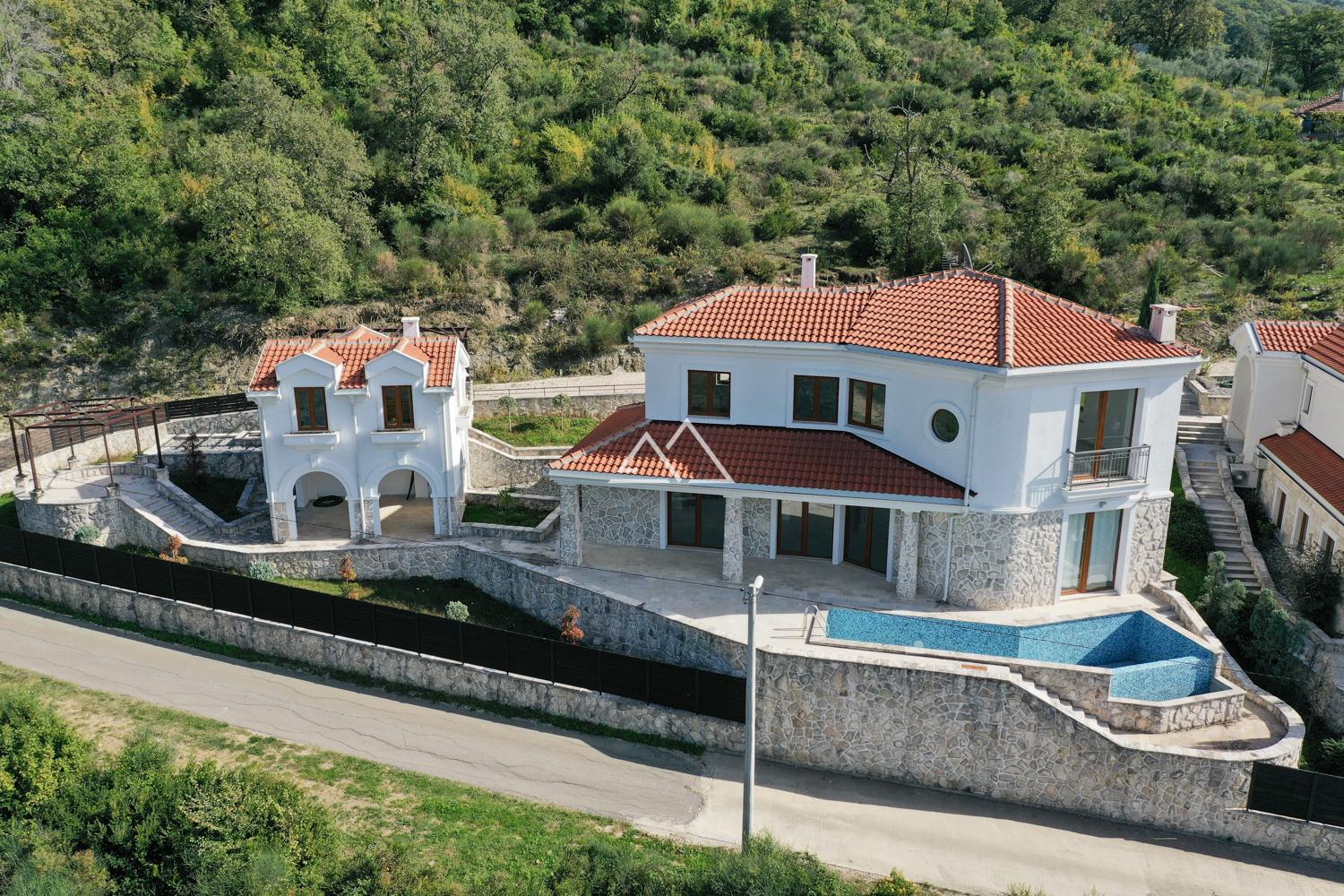This newly built, luxury villa for sale with stunning south-west facing views across Tivat Bay, is located on a cascading, well-landscaped plot in the village of Kavac, on mount Vrmac, Tivat Bay, Montenegro.