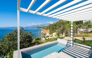 A modern new villa located next to the beach in one of the most picturesque corners of the Budva Riviera.