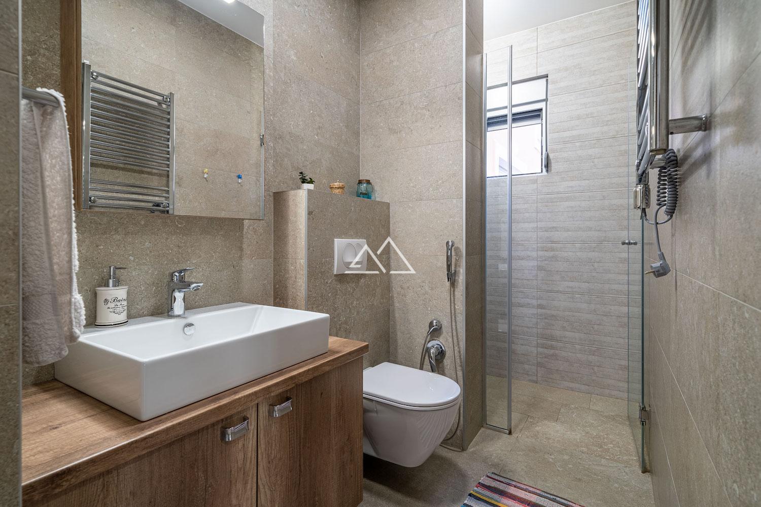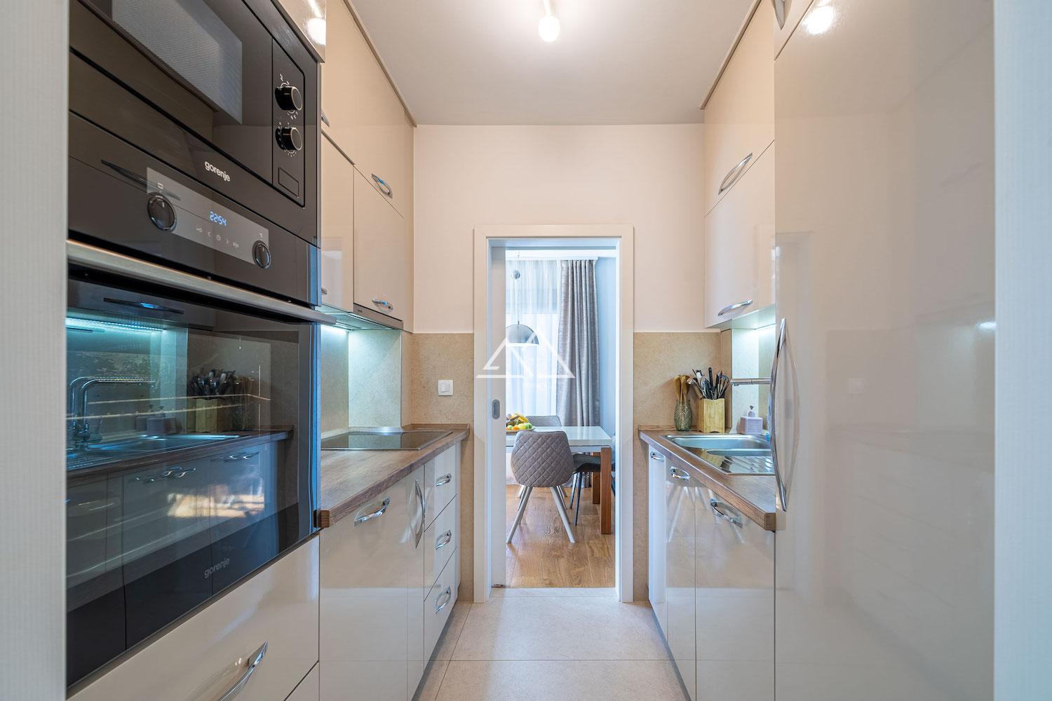 The apartment is fully furnished and equipped with home appliances. The bathrooms are finished with Italian tiles and Spanish sanitary ware, shower cabins and underfloor heating. All rooms have spit systems for heating and air conditioning.