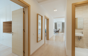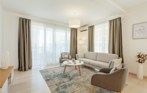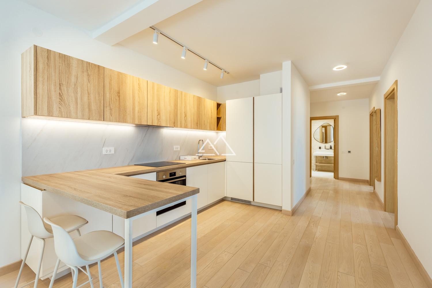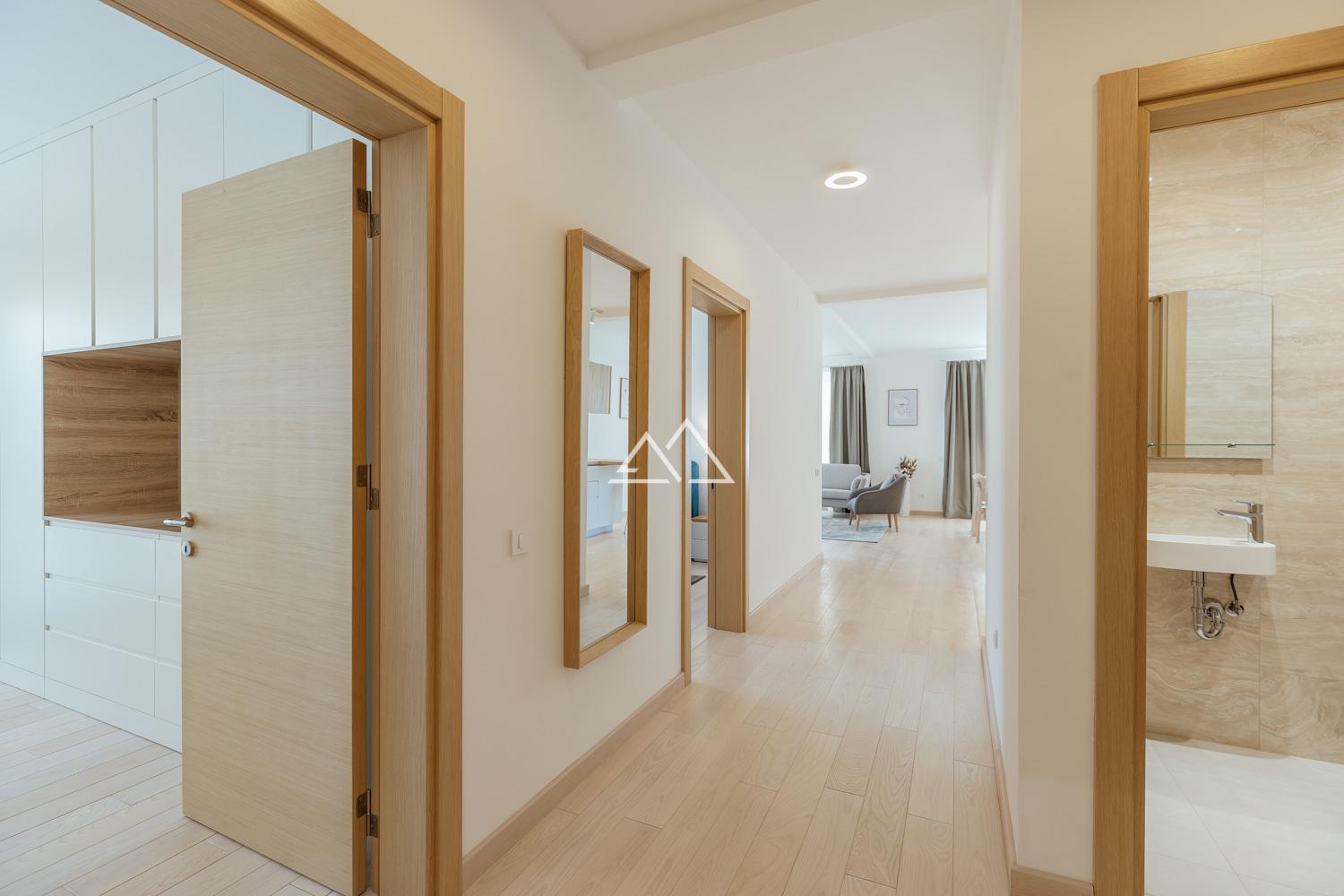 The concept of the complex is to provide you with the most relaxed and comfortable life surrounded by the magnificent nature of Montenegro. Low-rise buildings nurture the cozy atmosphere. Every building is equipped with the A-class KONE elevators. Residential complex offers 20 apartments with choices between one-bedroom, two-bedroom apartments. Apartments are sold with finished interior and installed sanitary wares. Fully furnished apartments are also available at extra charge. Top-quality finishing includes ceramic tiles from Italy in lavatories, parquet flooring in living rooms and bedrooms. Premium sanitary wares (Germany) and LG Air Conditioning. Windows are made from wood and aluminium for effective soundproofing and to maintain a comfortable microclimate at any season. Internet, satellite TV, and IP telephony are connected. All apartments have spacious terraces with mobile shutters.