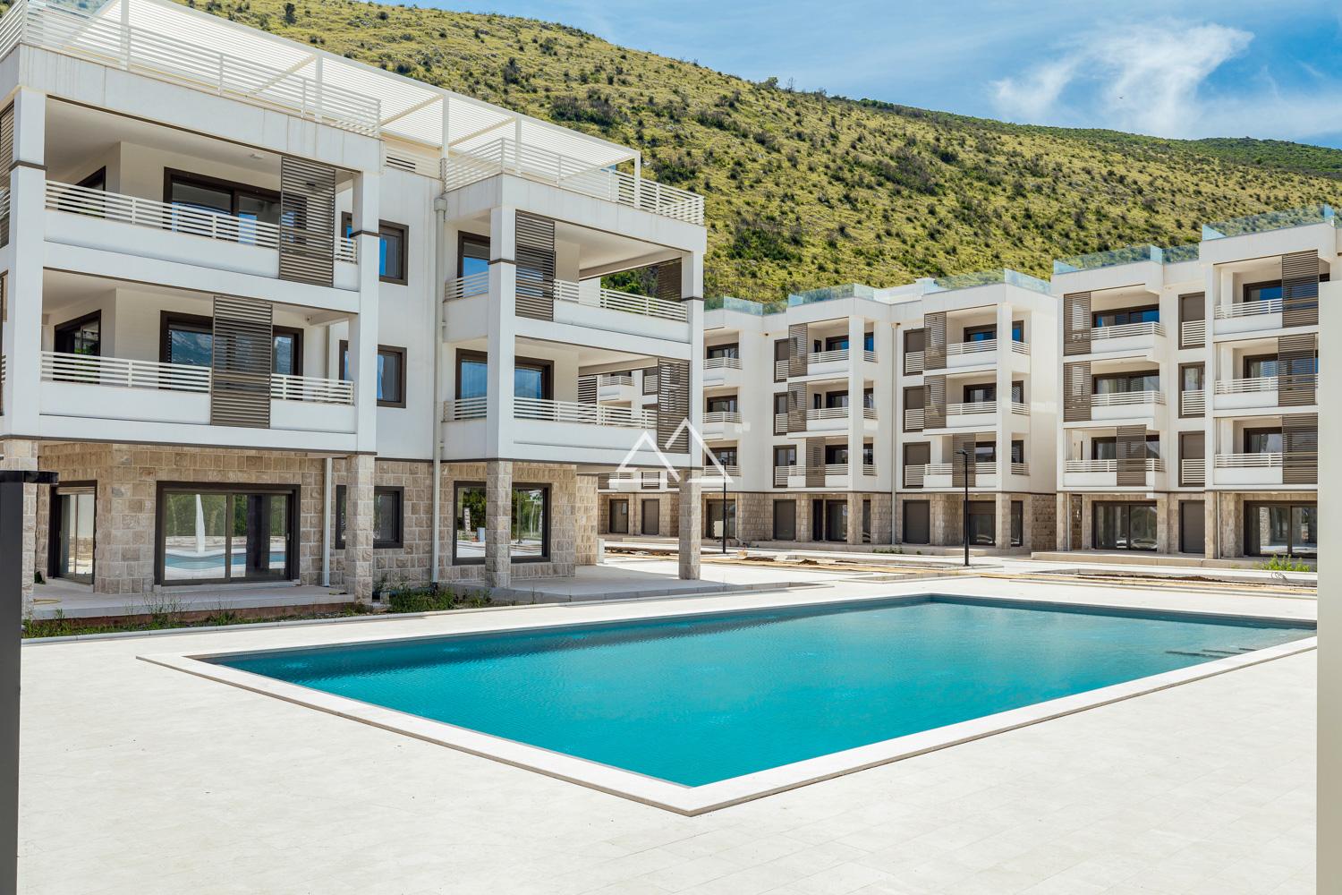 New modern residential complex with a swimming pool and its own infrastructure in Igalo, 300 meters from the sea.