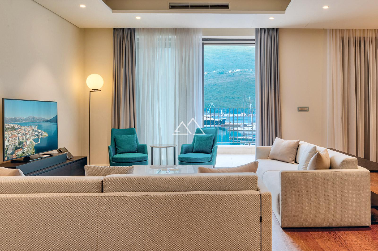 We are pleased to present furnished three-bedroom apartments in the luxury PORTONOVI project — a new world-class yacht resort located on the shores of the Bay of Kotor, offering exceptional infrastructure and services.