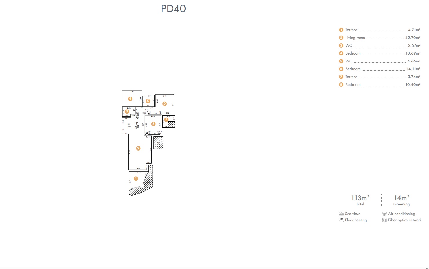 The apartment has an LG multi-split system in each room, as well as heated floors in the bathroom. Premium finishing materials of European producers are used in construction. Internet is connected through fiber optics, which ensures maximum speed and stability of the connection.