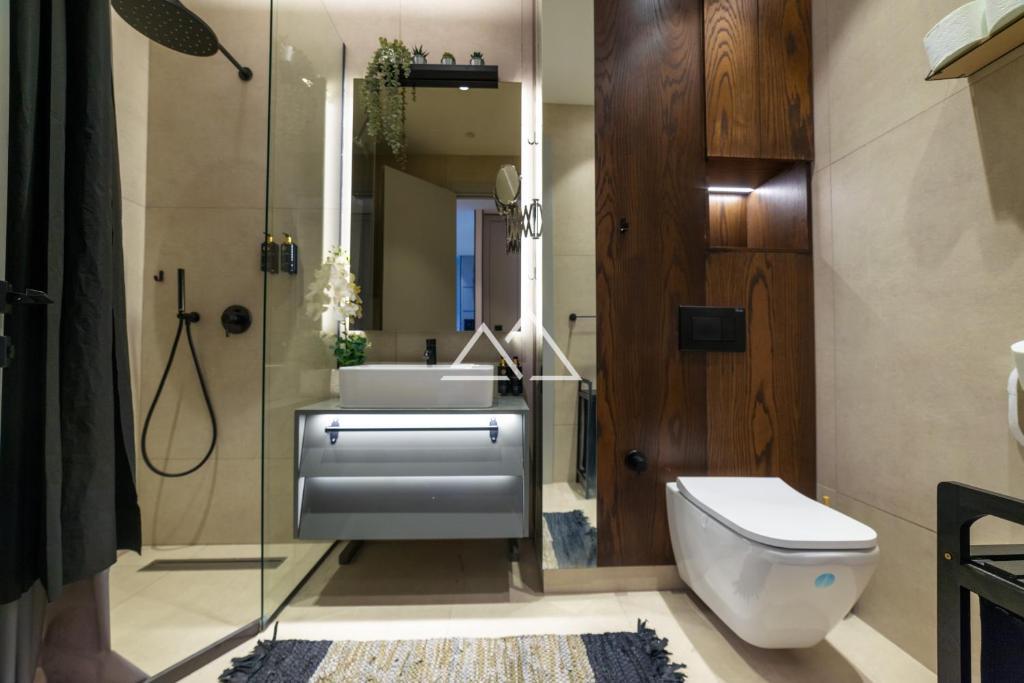 The apartments are sold with turnkey finishes. Individual design renovations are also possible. The interior decoration is done according to a design project using high-quality materials such as individually selected marble, designer wood, and stone solutions. The complex is equipped with a Legrand "Smart Home" system. Apartments with 1, 2, and 3 bedrooms are available for sale, ranging in size from 45 to 190 square meters.