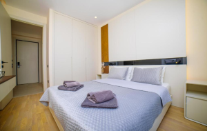 One-bedroom apartment in a new modern residential complex in Becici is an ideal place for those who want to live close to the sea and enjoy beautiful sea views. The distance to the sandy beach is only 150 meters along a flat road.