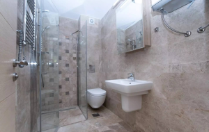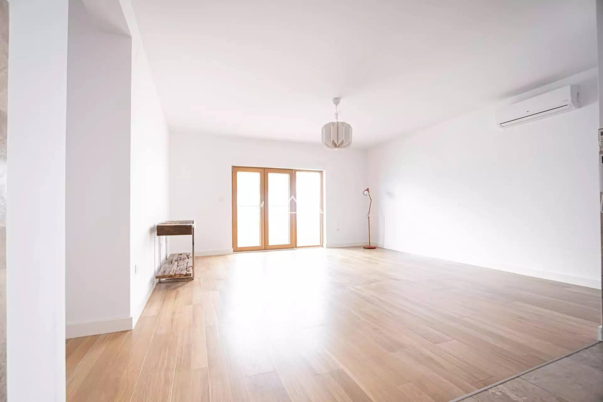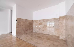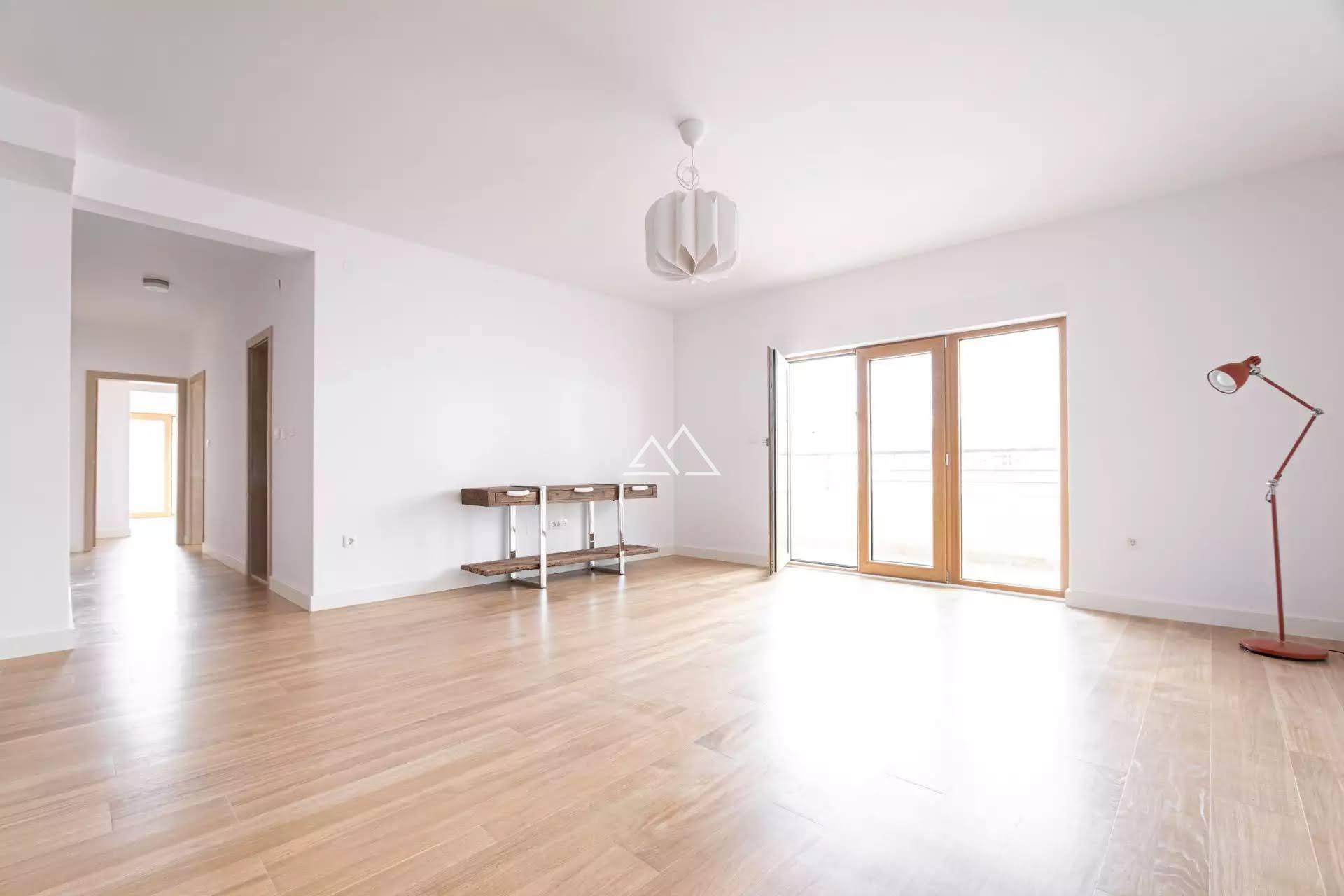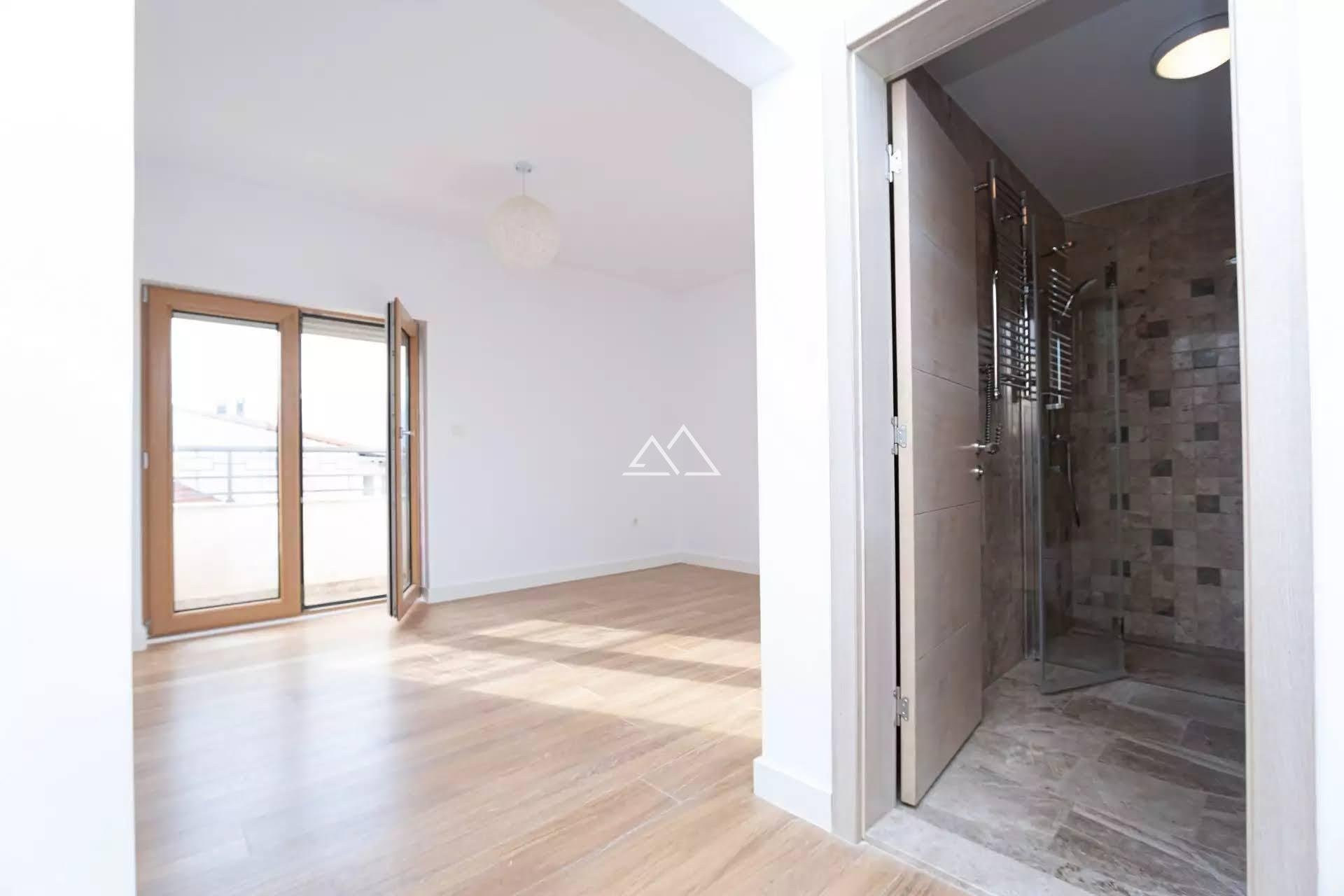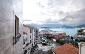 The apartment, with a total area of 96 square meters, is being sold with finishing touches and built-in plumbing. It consists of a very bright living room combined with a kitchen, two bedrooms, each with its own bathroom (with bath and shower), and two terraces where you can admire the beauty of the sea and observe the life of the city.