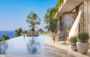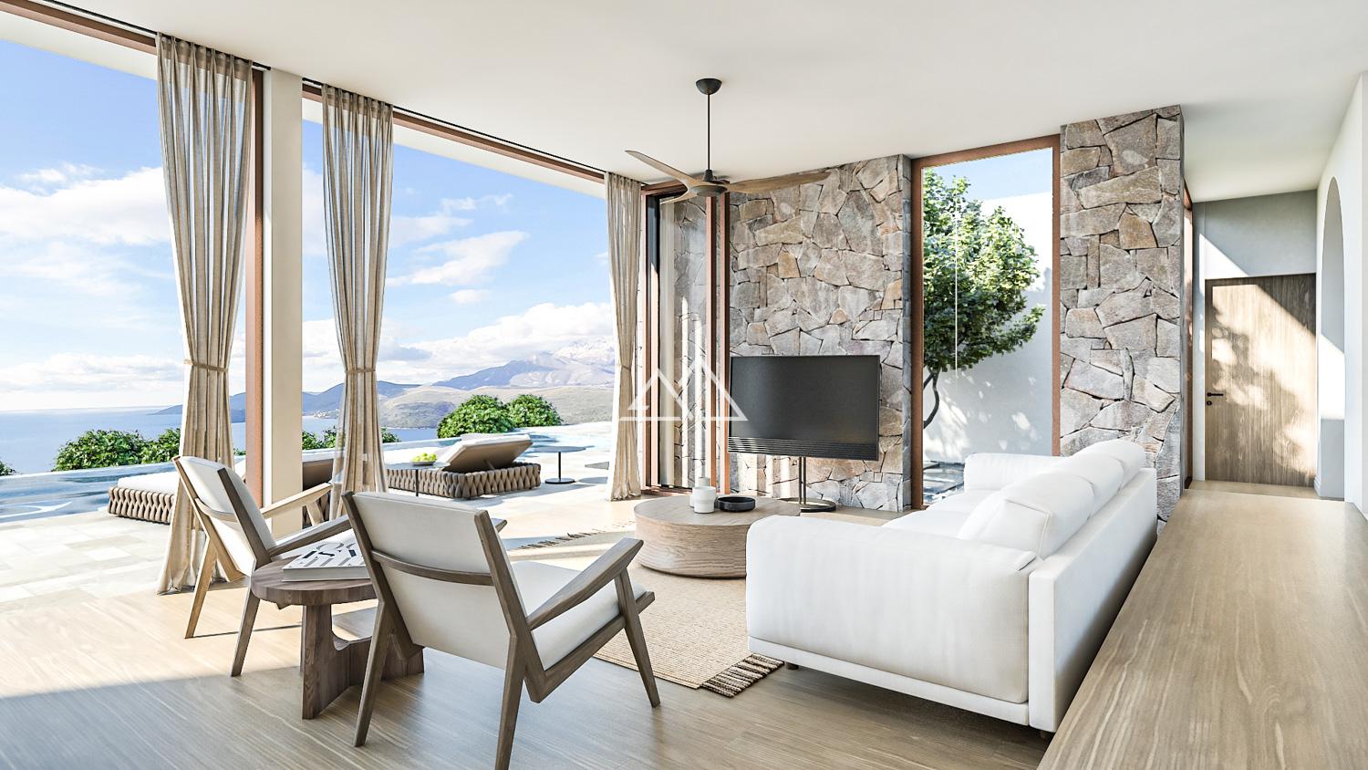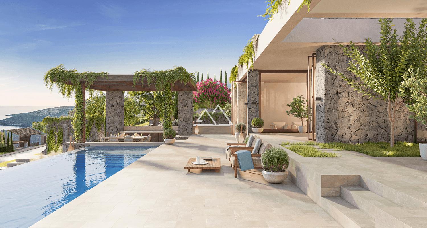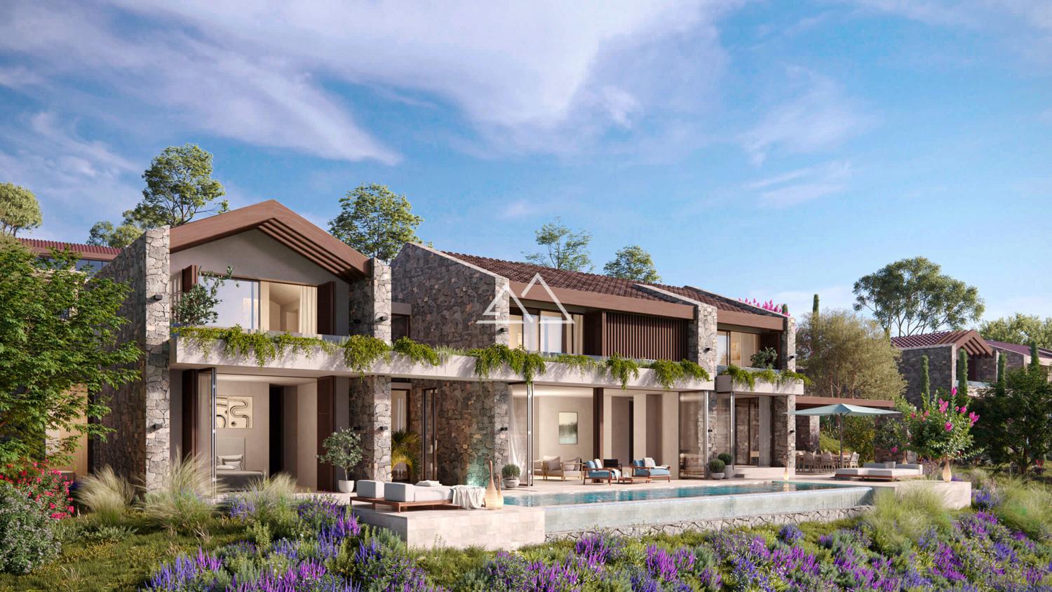 Villas boast stunning views of the sea, a swimming pool, a fire pit, a garden, and a barbecue area. The refined interior in natural tones, open layout, and panoramic windows fill the space with plenty of light and create a unique atmosphere.