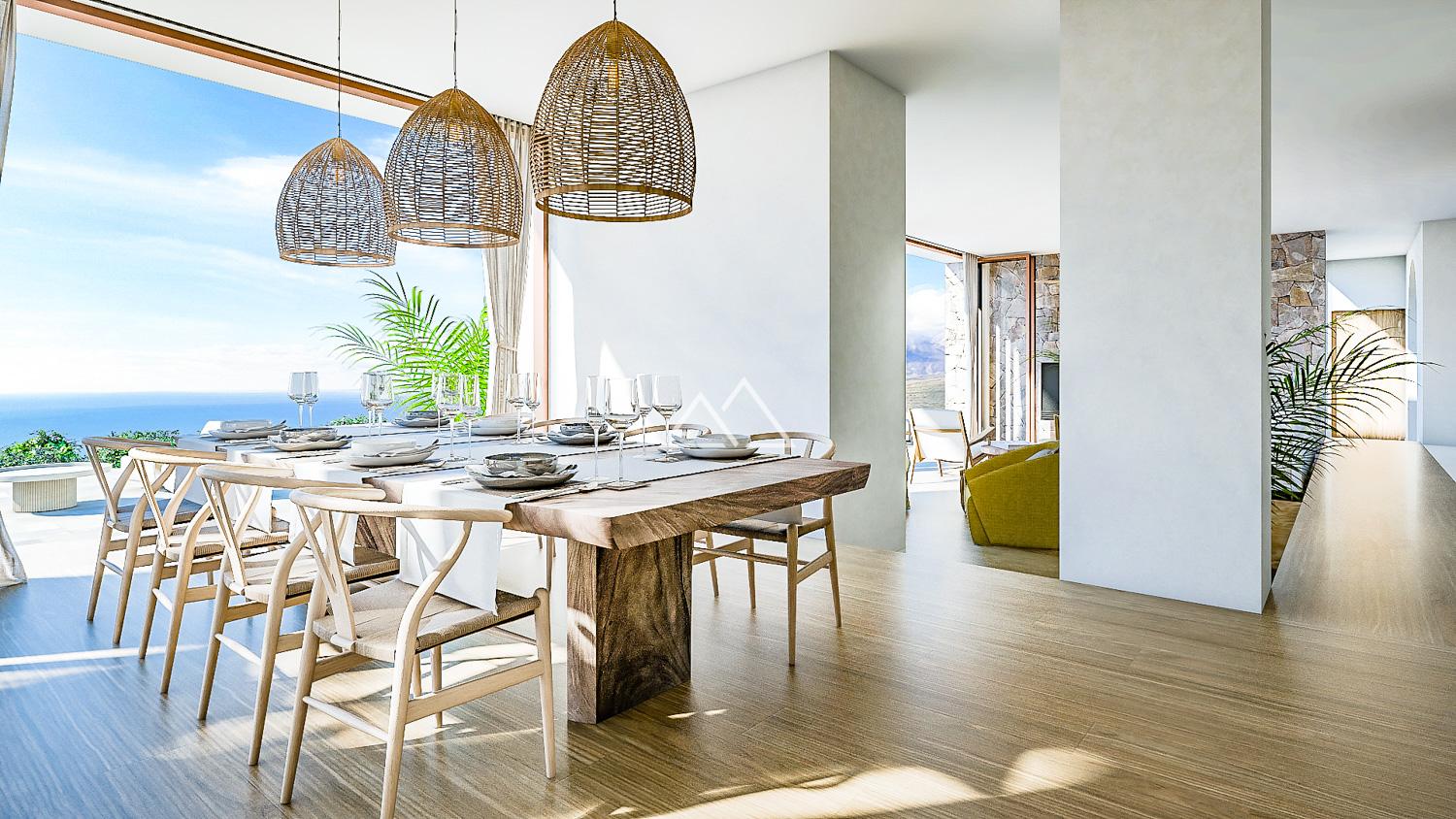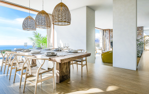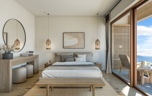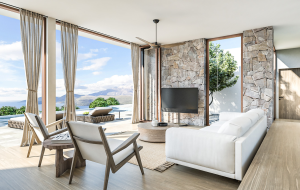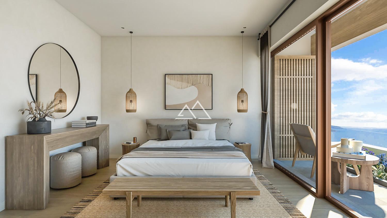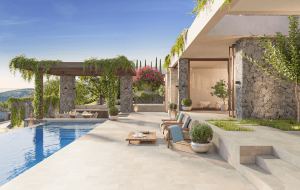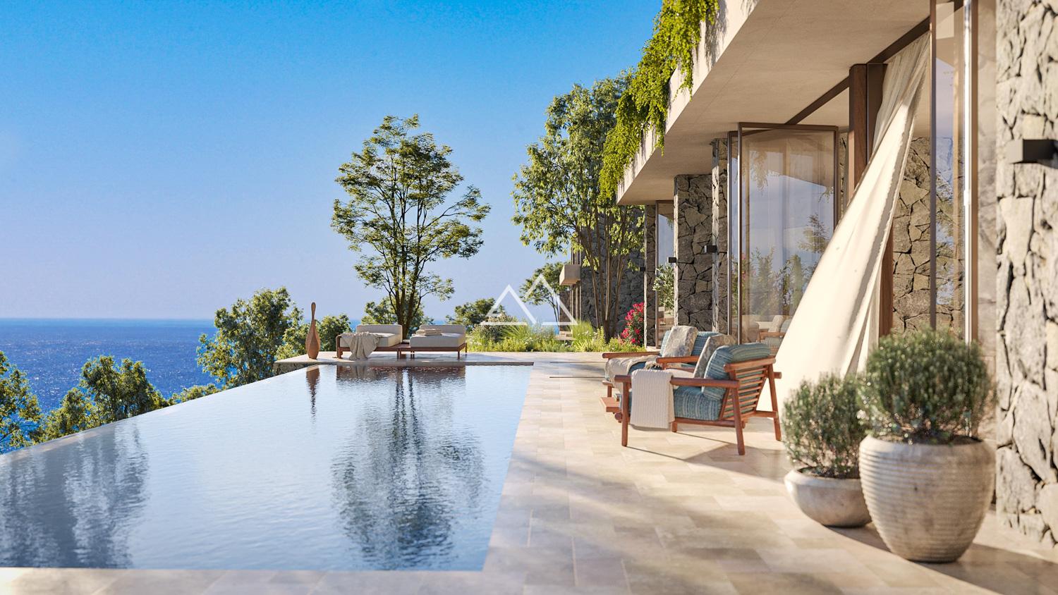 Villas boast stunning views of the sea, a swimming pool, a fire pit, a garden, and a barbecue area. The refined interior in natural tones, open layout, and panoramic windows fill the space with plenty of light and create a unique atmosphere.