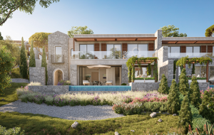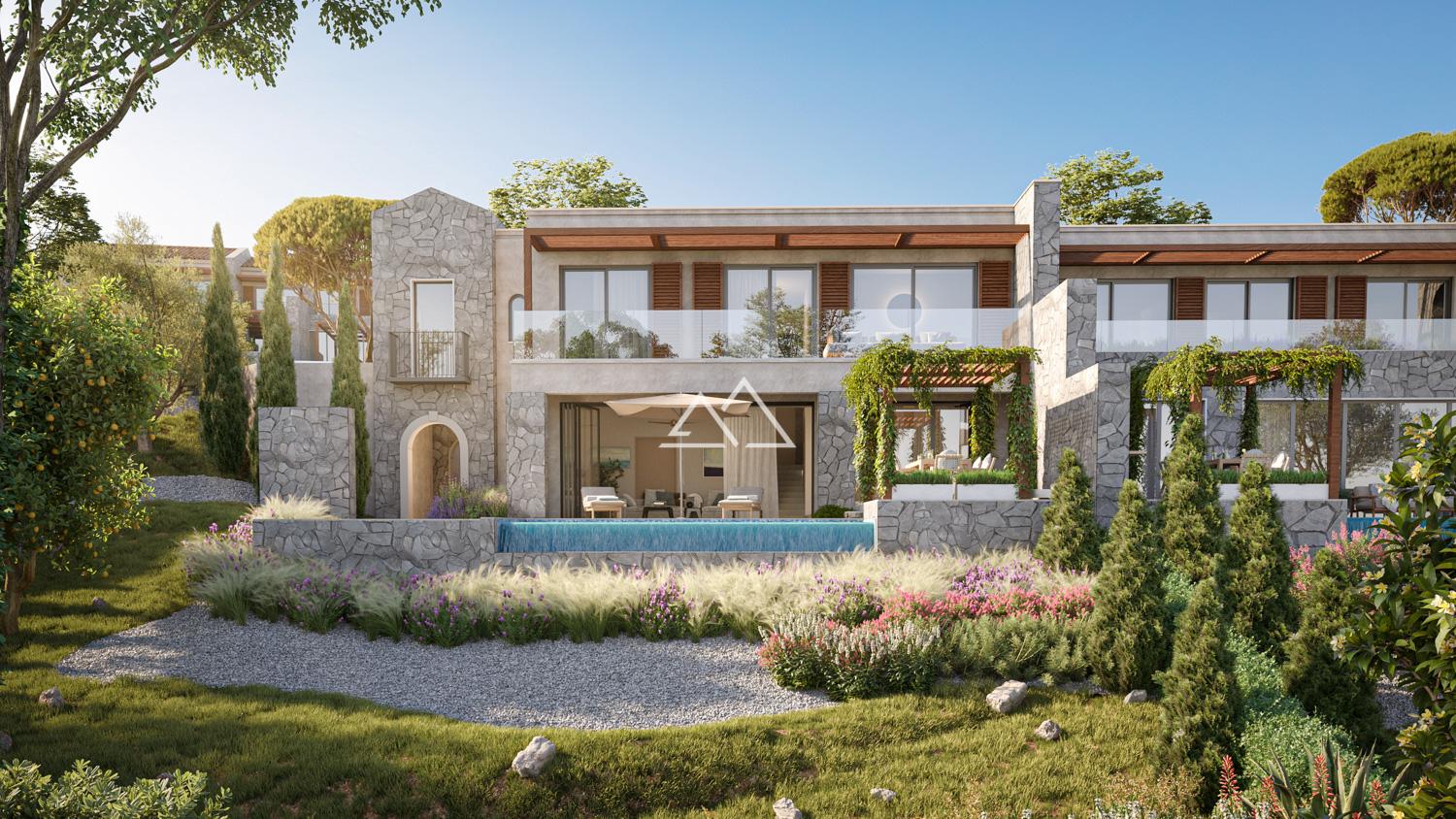 All townhouses have views of the sea, a swimming pool, a garden, and a stone terrace.