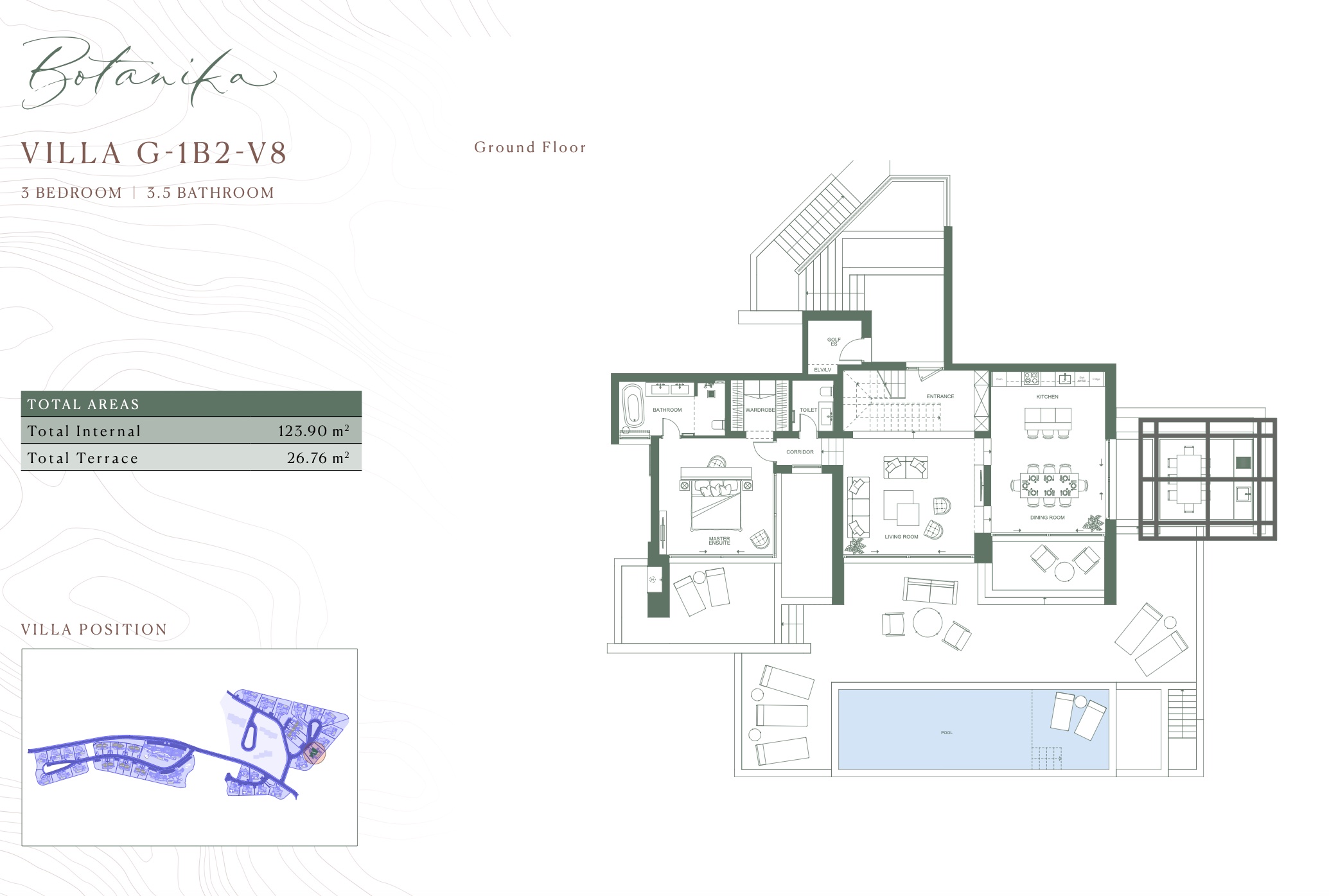 This villa has a total area of 338,47 square meters and features 3 bedrooms and a pool with breathtaking sea view. Plot area- 1.175 sq.m.