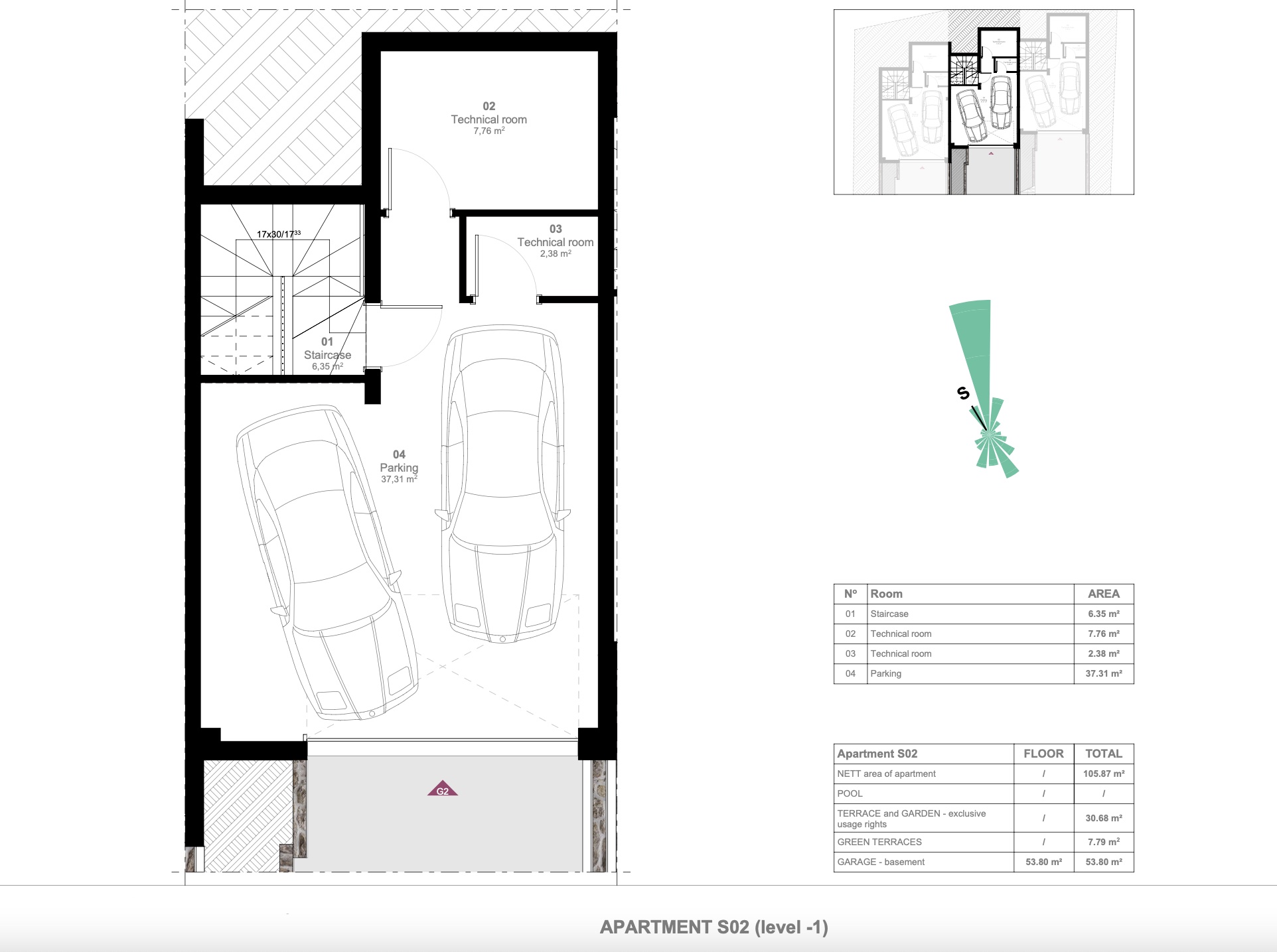 Ready-to-move-in townhouse with 2 bedrooms (K-2) a 2-car garage in a new premium-class complex in Tivat. The complex is situated on a small elevation surrounded by greenery, close to all city infrastructure. The distance to the sea is 400 meters. Panoramic windows offer breathtaking views of the sea, mountains, Tivat, and Porto-Montenegro. The project's distinctive features include walk-in closets and storage rooms, as well as a private garage.