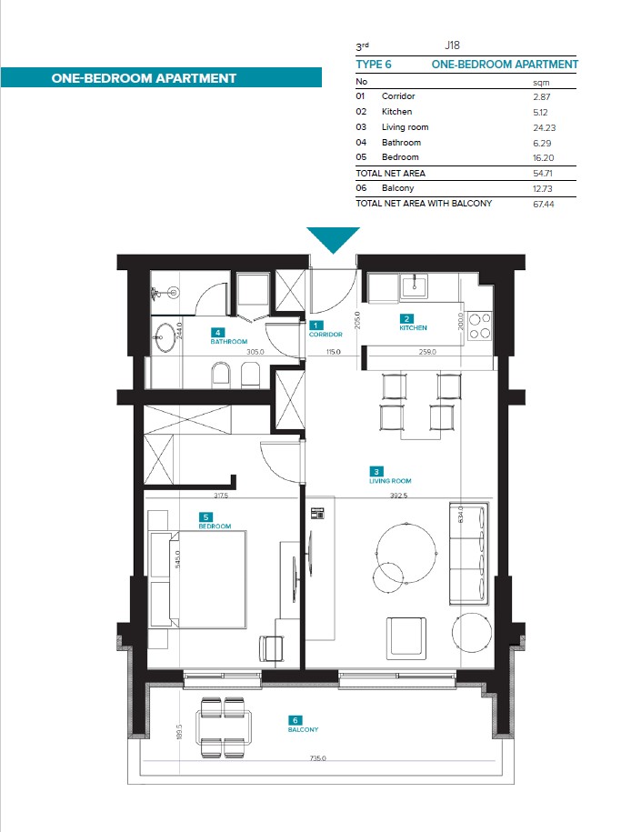 This apartment is designed in a Mediterranean style and consist of two rooms with high-quality finishes, namely a living room with a kitchen and bedroom, as well as a bathroom.