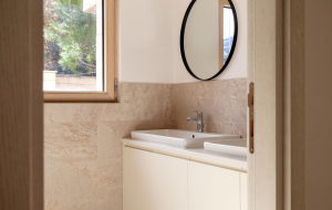 The complex consists of 5 buildings with an earthquake-resistant monolithic frame structure filled with brickwork. The external load-bearing walls are 300 mm thick and are lined with 7,500 m2 of Verona travertine on the façade. Under the travertine there is a 4-level hydro and thermal insulation system created using “warm ceramics” technology, which also protects against noise.
