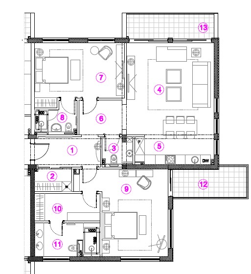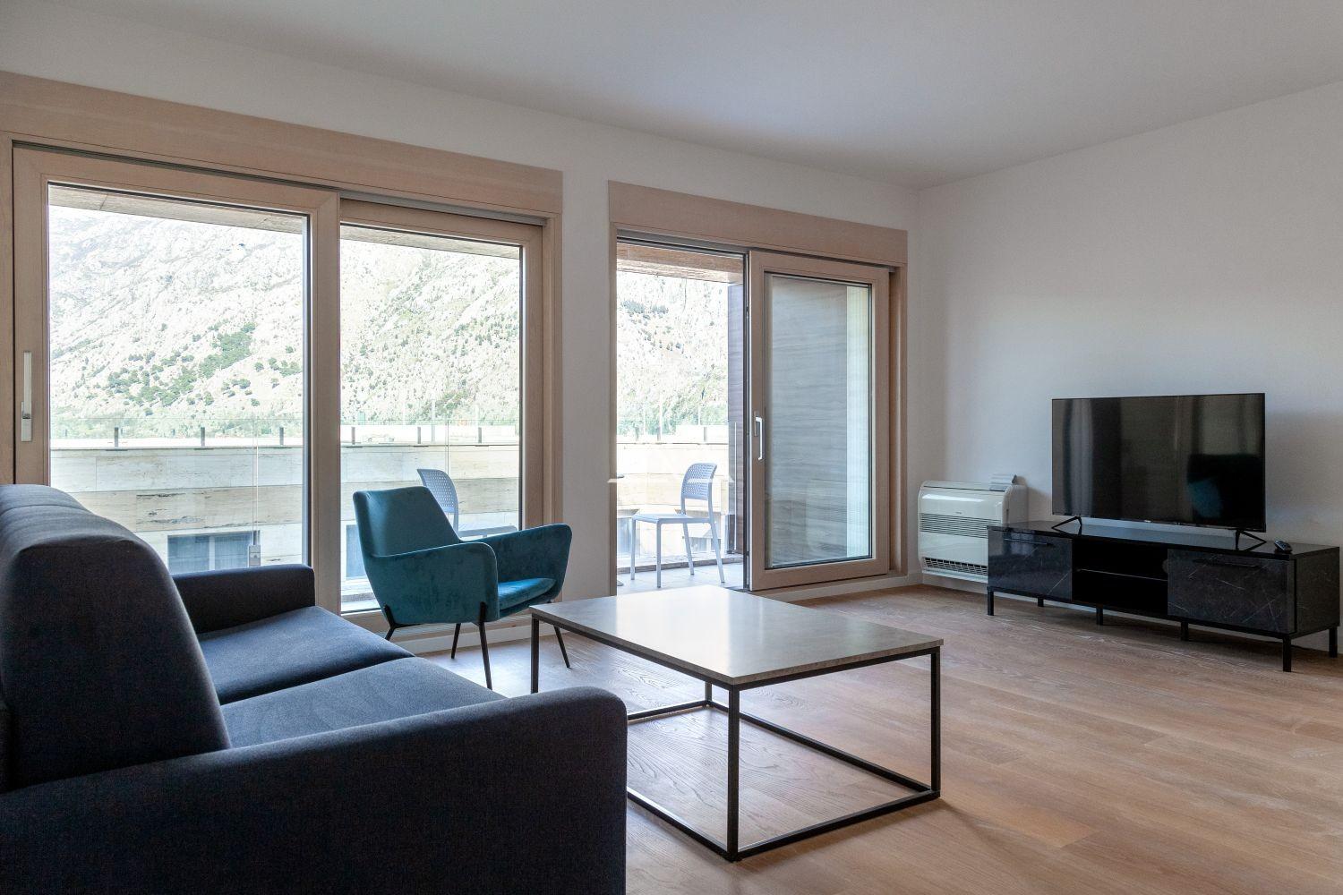 Two-bedroom apartment 136 sq.m in a new modern residential complex on the Bay of Kotor. The apartment has a living room with kitchen, 2 bedrooms, 2 bathrooms, 1 guest bathroom, hallway, wardrobe room, laundry room, 2 terraces. High-quality finishes, lots of light, panoramic windows. The apartments are sold already finished, using parquet made of precious wood, Porcelanosa porcelain tiles and Villeroy & Boch and Noken sanitary ware. The apartment is fully furnished and ready to move in.