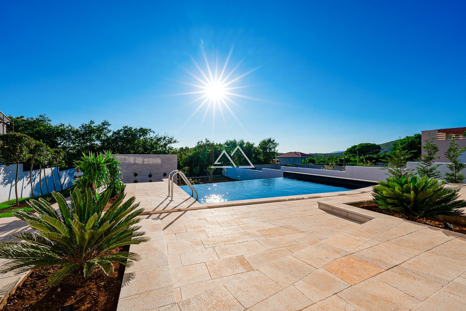 Large floor to ceiling windows throughout with postcard views across the Adriatic and its stone facade dominate this villa and exhibit refreshing and modern Mediterranean outlook.