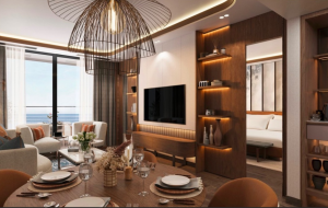 Consists of a spacious living room with dining area, kitchen, bedroom, bathroom,toilet with laundry,dressing room and terrace. All rooms, apartments and penthouses meet the highest standards of a 5 star hotel.