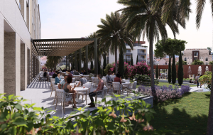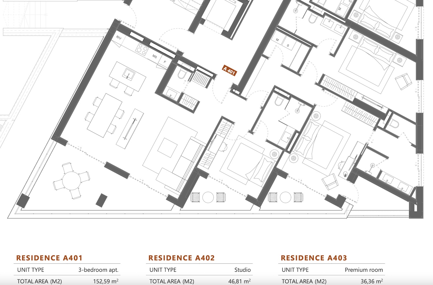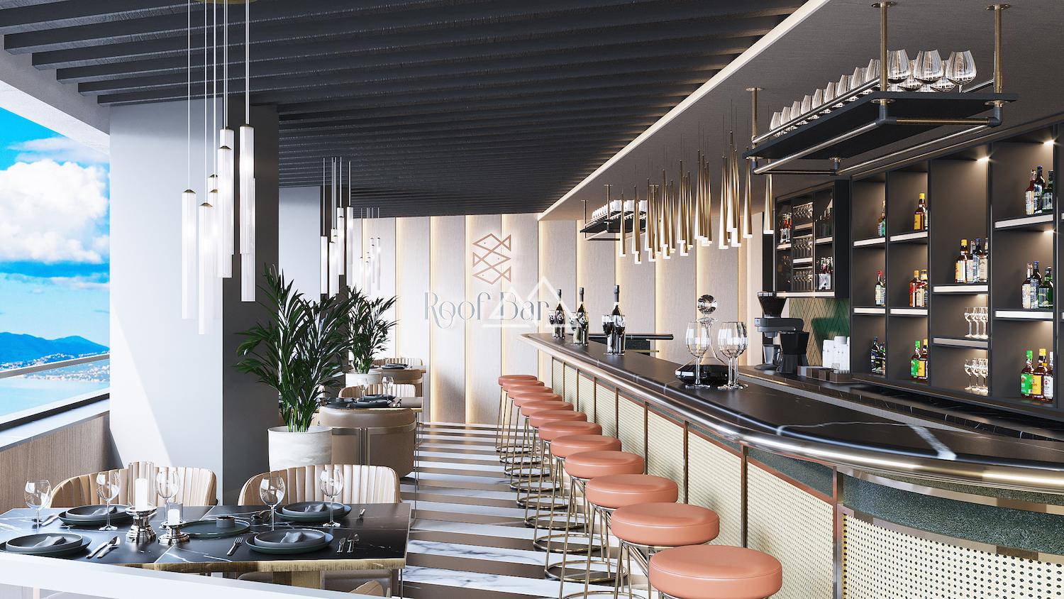On the ground floor there are commercial premises and a restaurant with a large and sunny outdoor terrace and a coffee shop. The territory of the hotel is planned to be landscaped with a fountain and a mini park for families with children. Night illumination of the complex will create a unique romantic atmosphere.