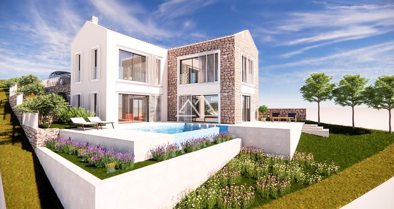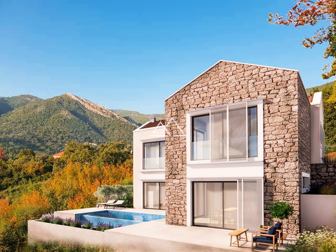 New modern villa with pool and panoramic sea and mountain view in the village of Kavac near Tivat.