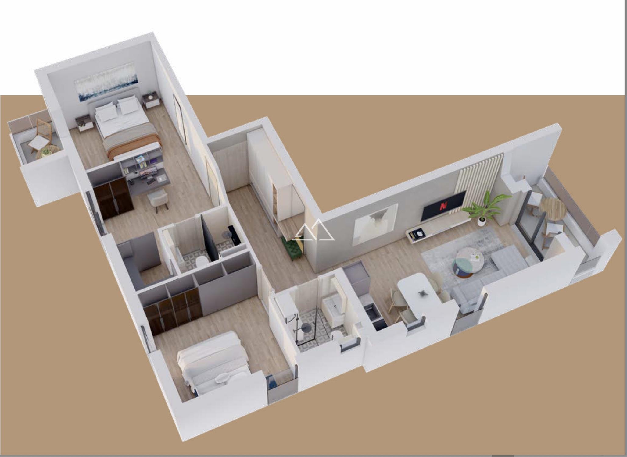 Two-bedroom apartment in the new residential complex "PIETRA RESIDENCE" in the quiet area of Budva - Podkošljun, just a 4-minute drive from the beach and promenade.