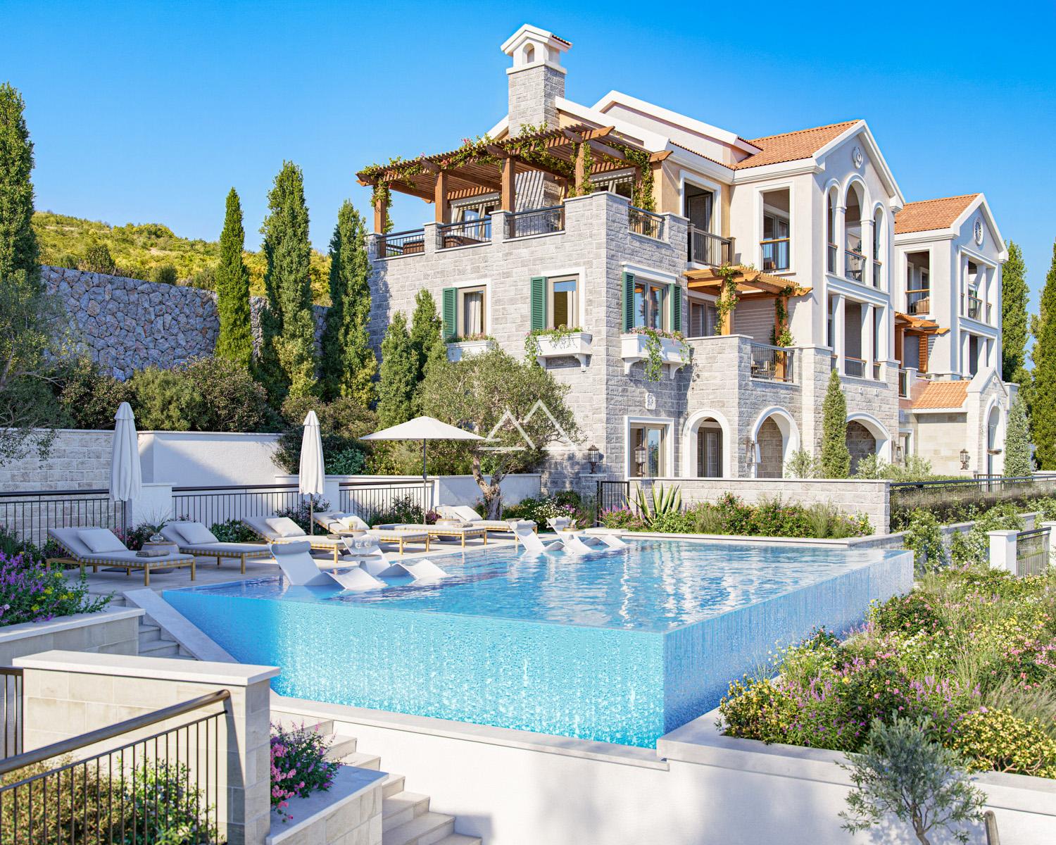 A unique location, stunning views of the Adriatic, and elegant architecture. All homes in the project are built using natural materials, including natural stone in a traditional style. The territory includes a pool, a relaxation area, and a garden.